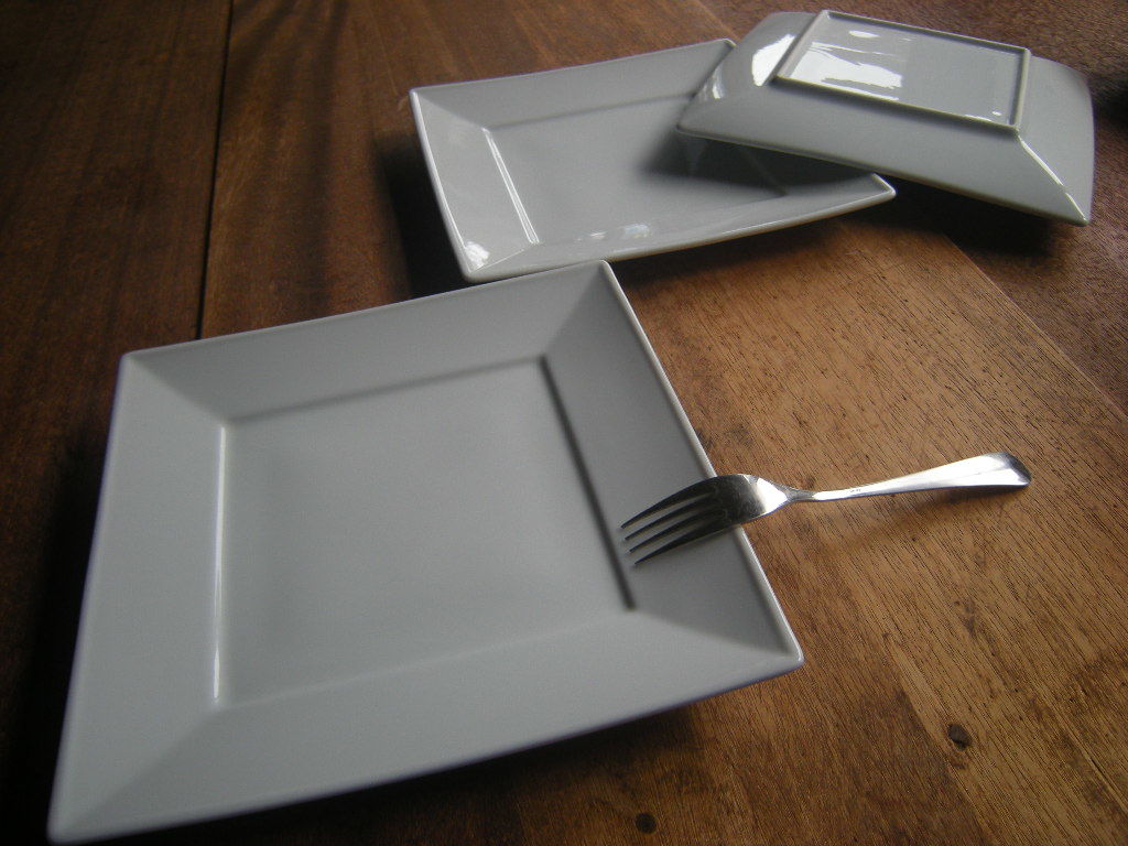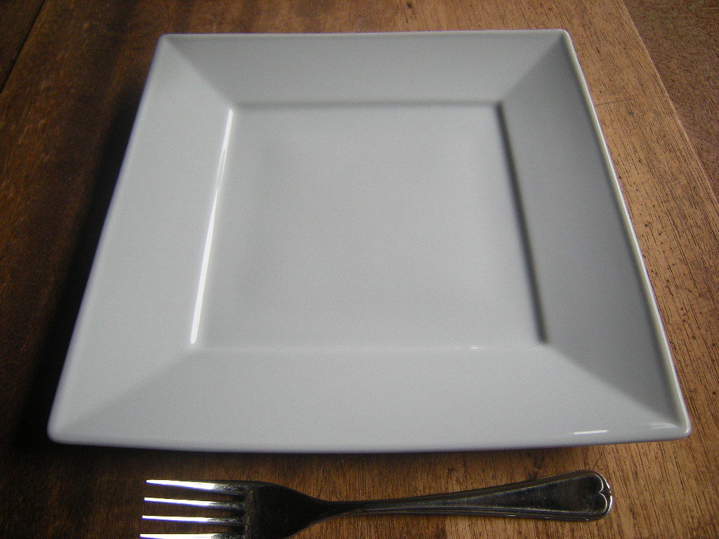 山◎美濃焼*売り切り【新品・未使用】白磁器 リム 正角プレート 大 8.5寸(25.7㎝x3㎝)1枚から *レストラン-ホテルうつわ*