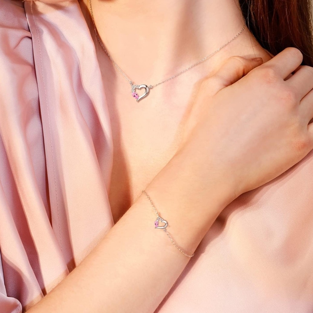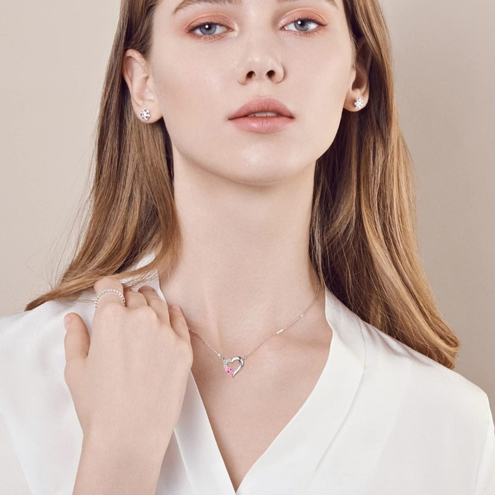 ダイヤモンドの輝きに負けないジルコニアを贅沢に3粒採用、また横5mmx縦3mmの天然石が絶秒なバランスにセッティングされました。シンプルなハートデザインで、しっかりとした作りのネックレスが上品で洗練された印象を与えます。
