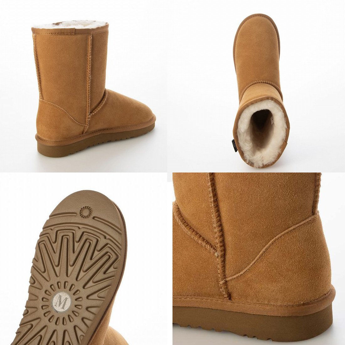 39lk 全国送料無料 ムートン100% 羊毛 ミドルブーツ シープスキン ボア あったか