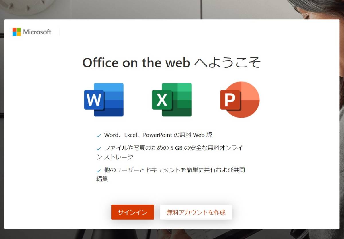 (Word、Excel、PowerPoint、OneNote、Sway の機能をブラウザーで使うことができます。Office をインストールする必要はありません。 )