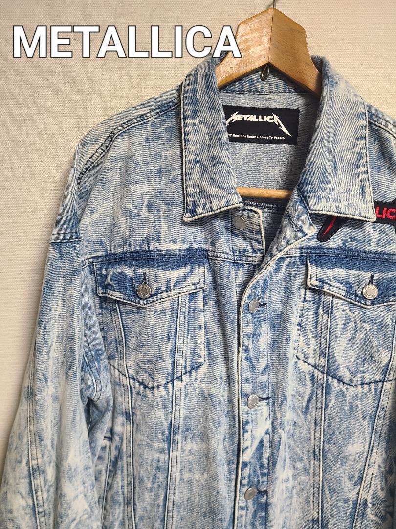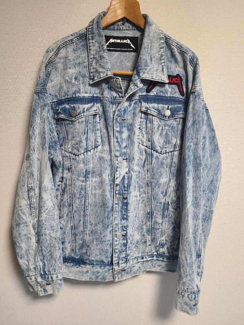 商品名:メタリカ ジージャン Gジャン デニム ジャケット 羽織 ロゴ プリント ケミカルウォッシュ フリーサイズ