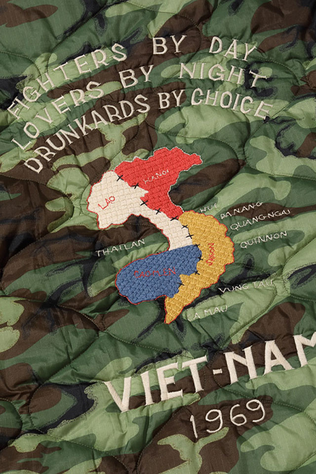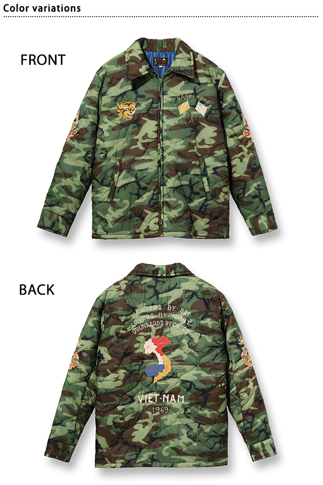 探求心と情熱を持って、上質なアイテムを製作し続けている「テーラー東洋」から、Late 1960s Style ベトナムライナージャケット「VIETNAM MAP」(TT15396)のご紹介です。 1969年にベトナムへ駐留していた米兵がミリタリーライナーの生地でカスタムオーダーしたベトジャンがベース。 また今季、このベトナムライナージャケットはリニューアルしており、生地やパターンを一新。 特に生地にはこだわり、色のコントラストの強い当時の迷彩を再現しているため、刺繍もそれに負けないビビットな色味で構成されています。 | ||||||||||||||||||||