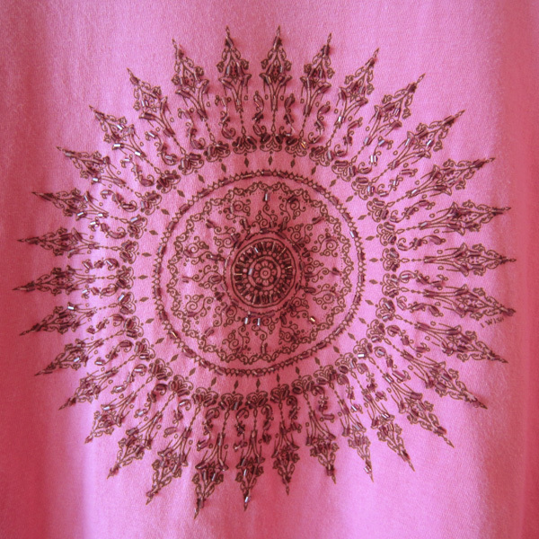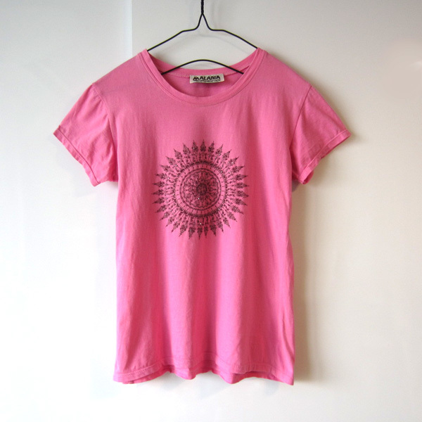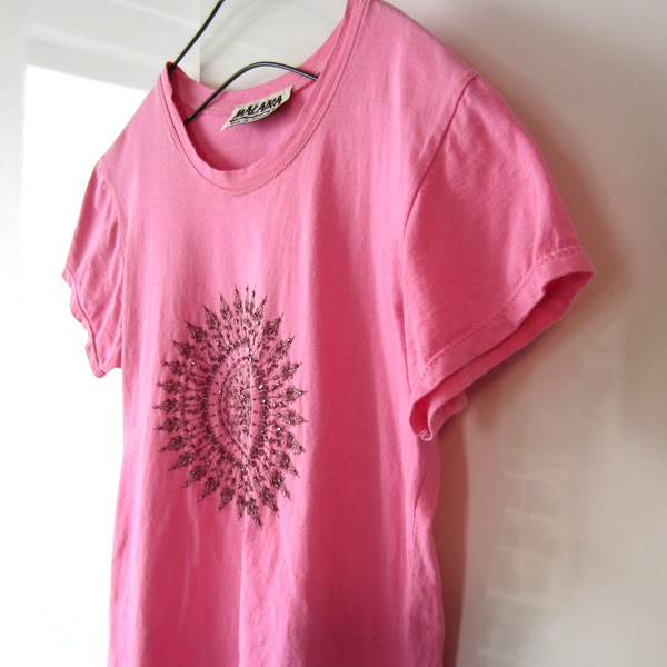 美品 マライカ MALAIKA ビーズの付いたプリントTシャツ ピンク