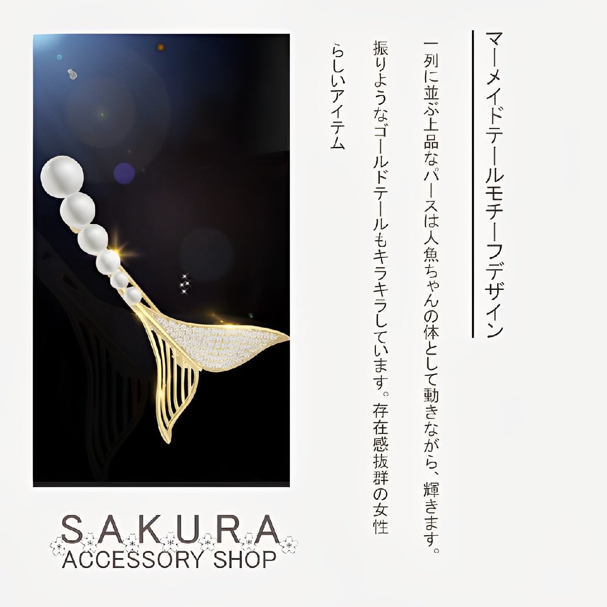 一列に並ぶ上品なパースは人魚ちゃんの体として動きながら、輝きます。