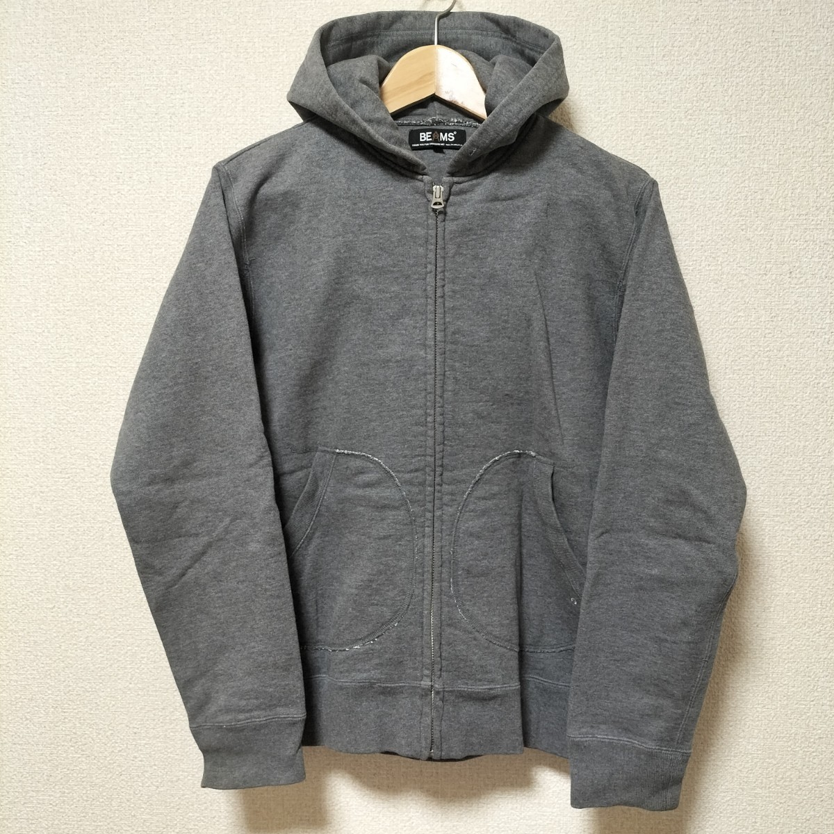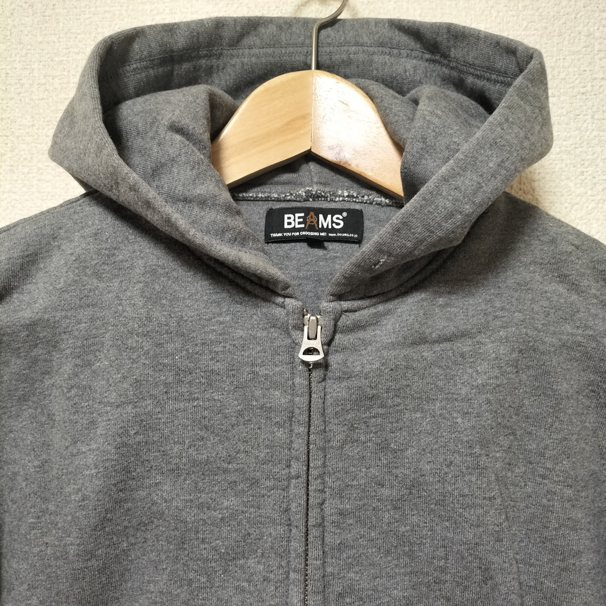 ☆BEAMS スウェットパーカー フルジップアップ フーディー トレーナー 裏パイル メンズ サイズS 濃グレー ビームス アメカジ ブランド古着 USED