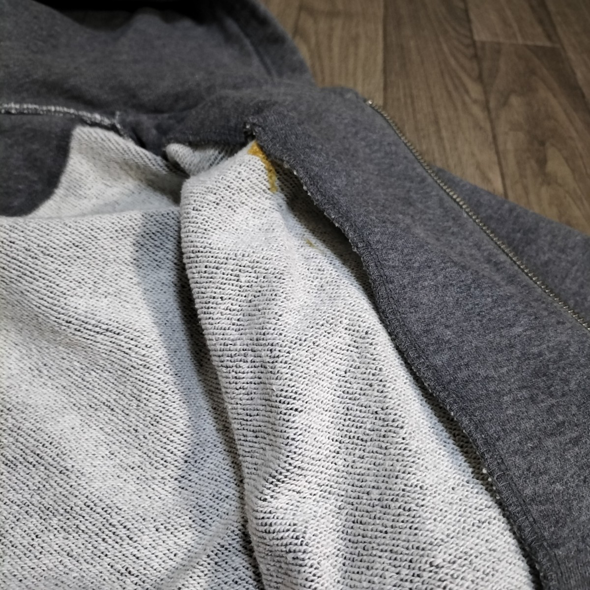 ・生地の厚さ:アウターとして使えるくらいパーカーとしては厚めで、またしっかりとした生地となっています