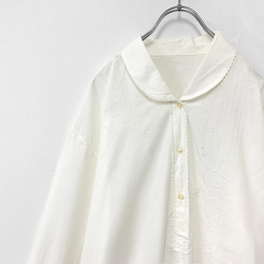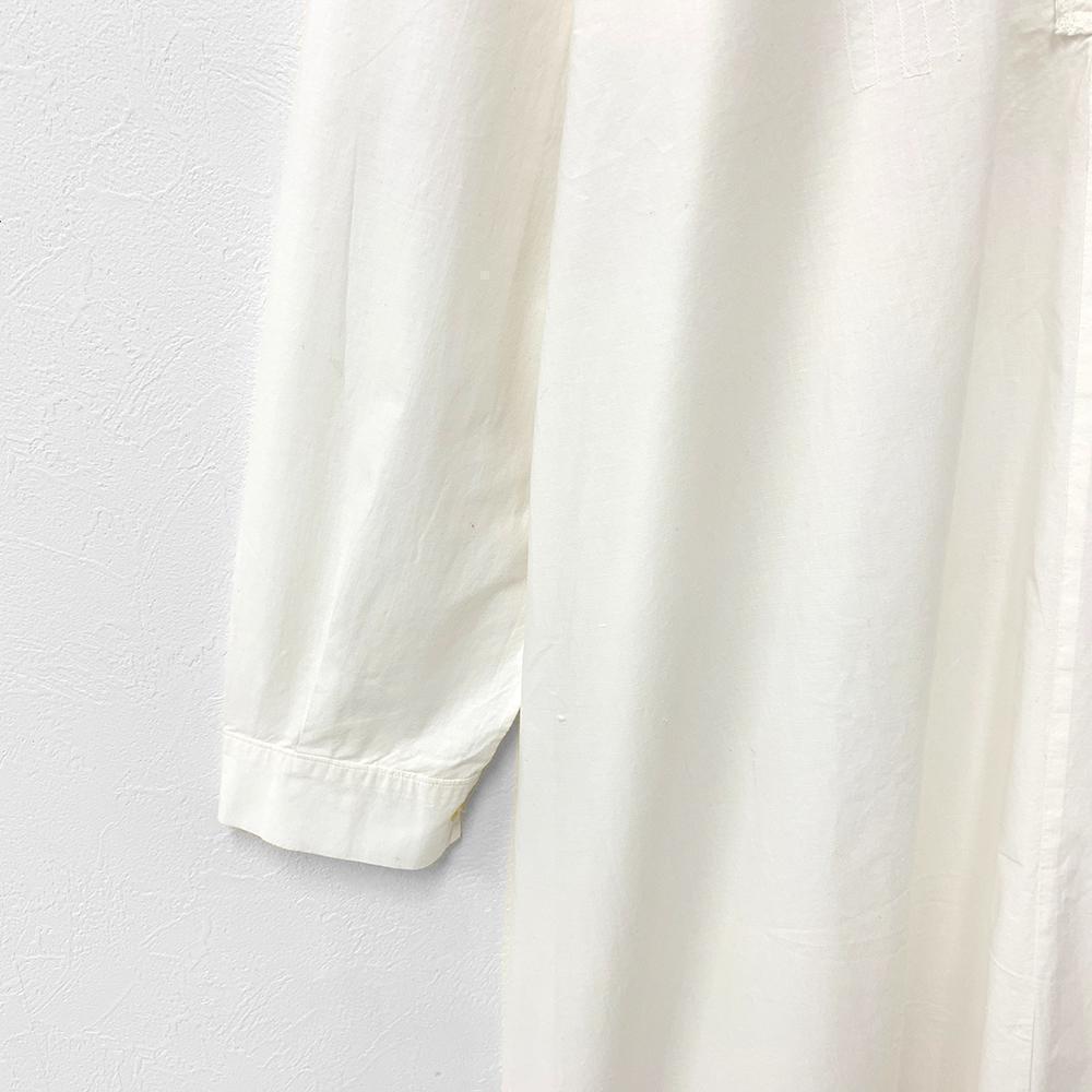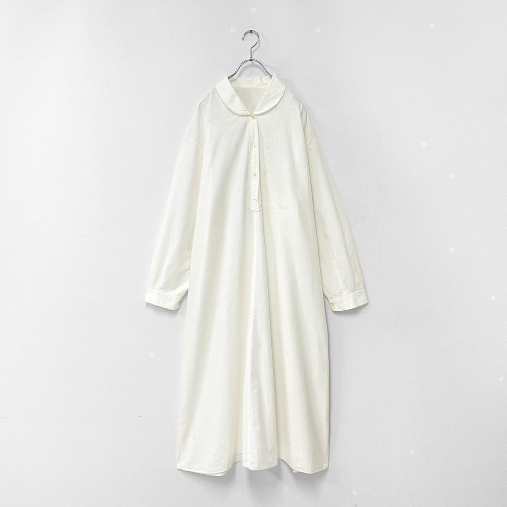 フランス アンティーク ヴィンテージ 刺繍 レース ラウンドカラー 長袖 ロング ワンピース 白 XL