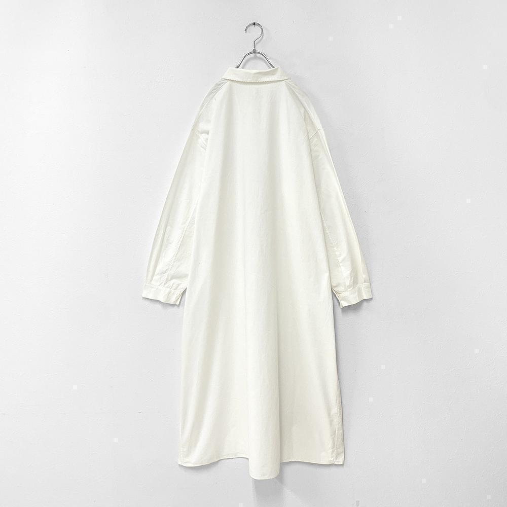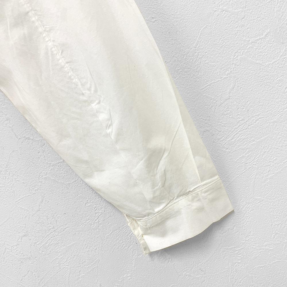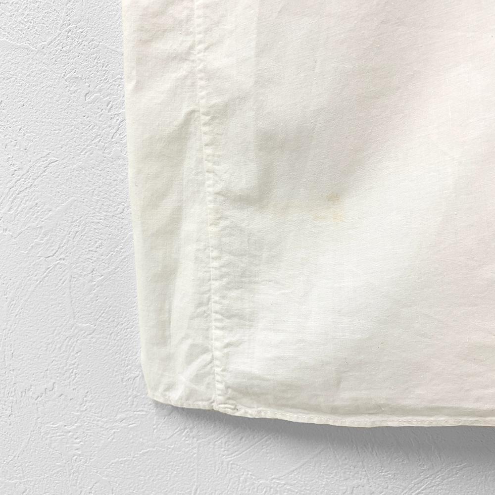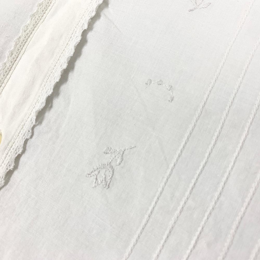 フランス アンティーク ヴィンテージ 刺繍 レース ラウンドカラー 長袖 ロング ワンピース 白 XL