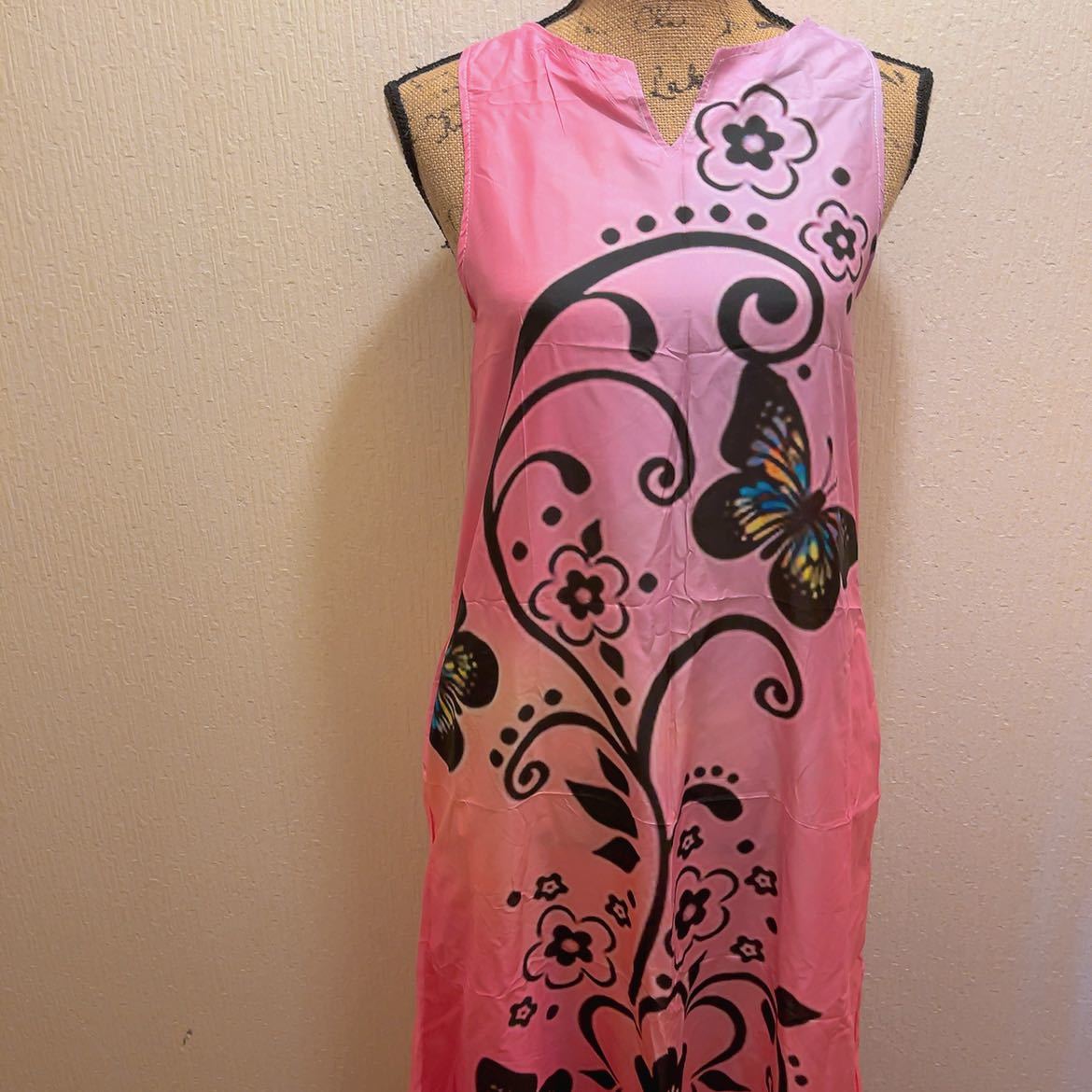 ★商品名】新品★ピンク★蝶々&花柄★マキシワンピース★総柄★ホームウェア★M