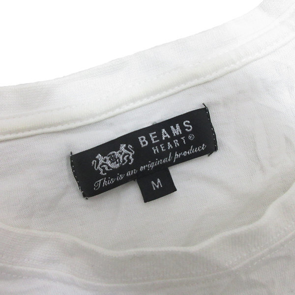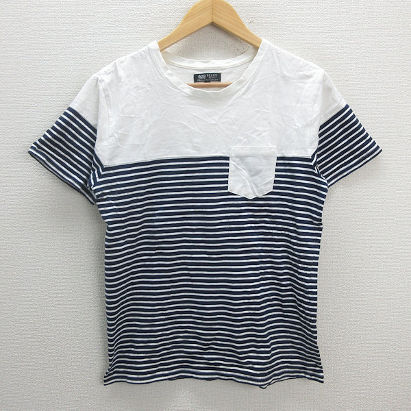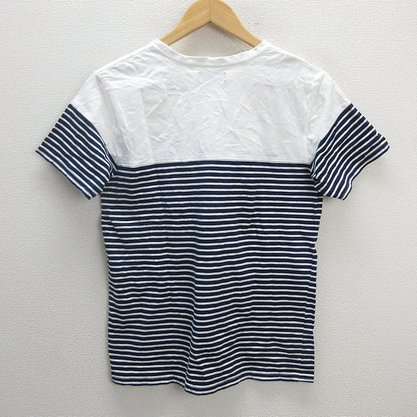 s■ビームス/BEAMS ボーダー柄 切り替え半袖Tシャツ【M】白 紺/MENS/23【中古】