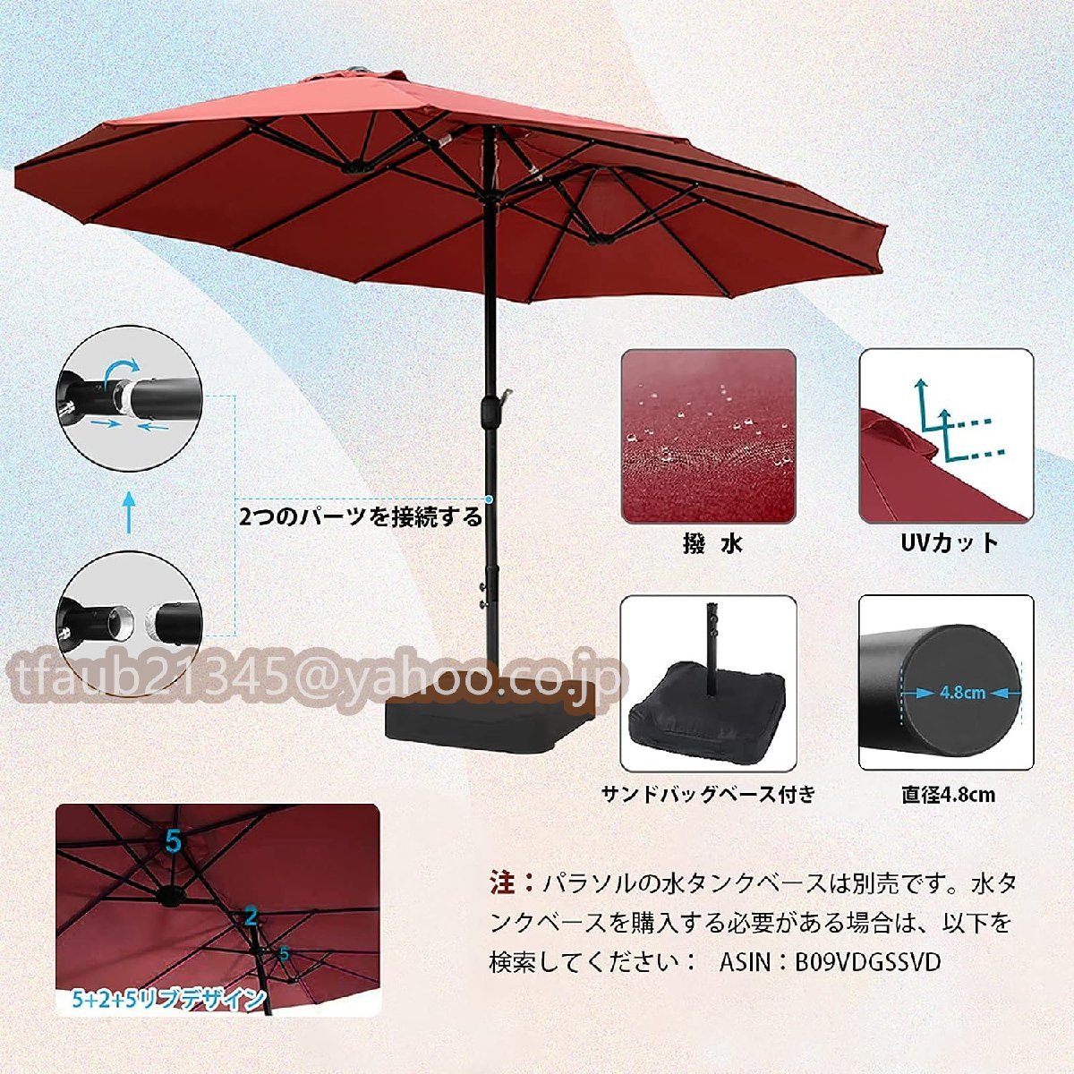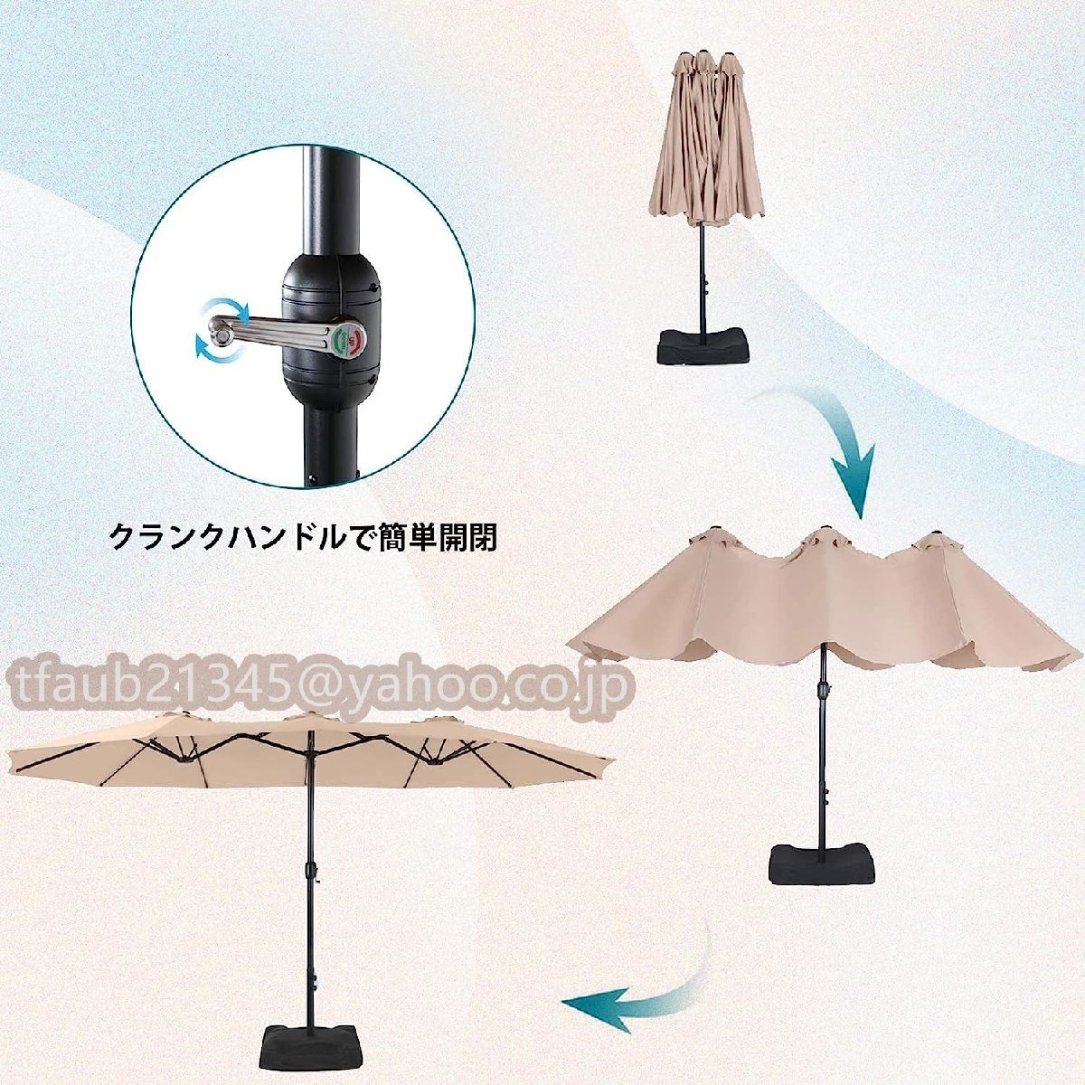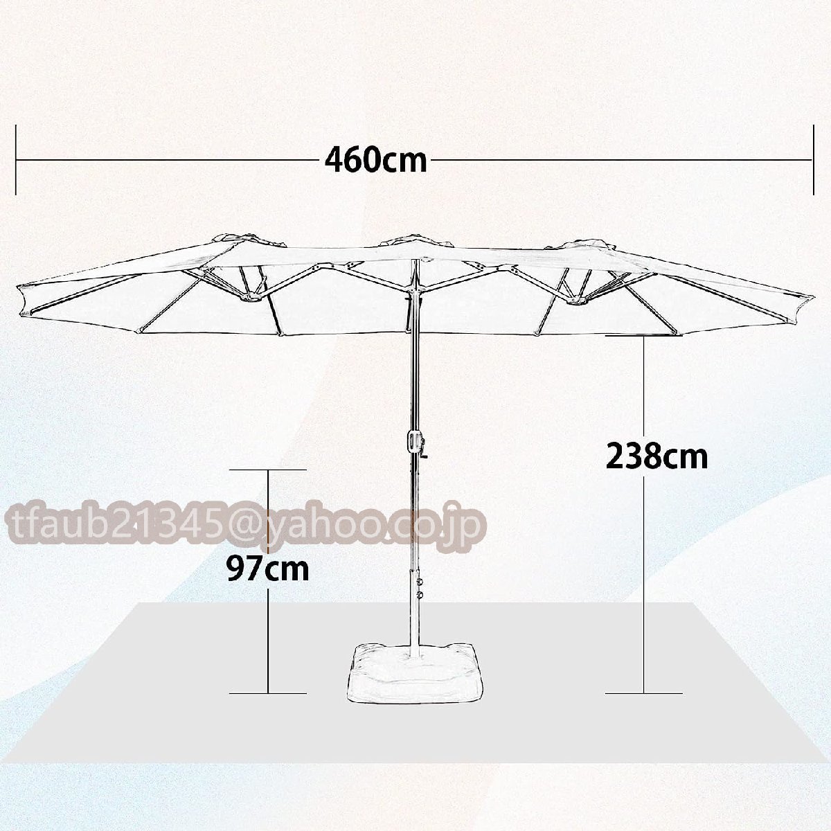 パラソル ガーデンパラソル 大型 長方形 パラソル 460cm× 260cm UVカット 撥水加工 クランク開閉付き サンドバッグベース付き