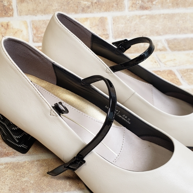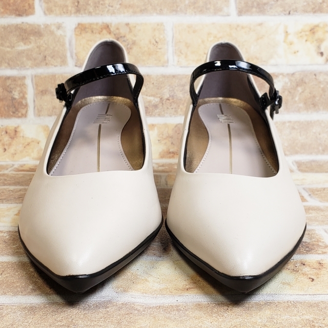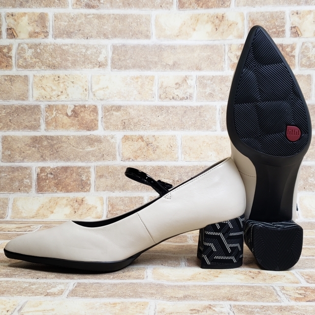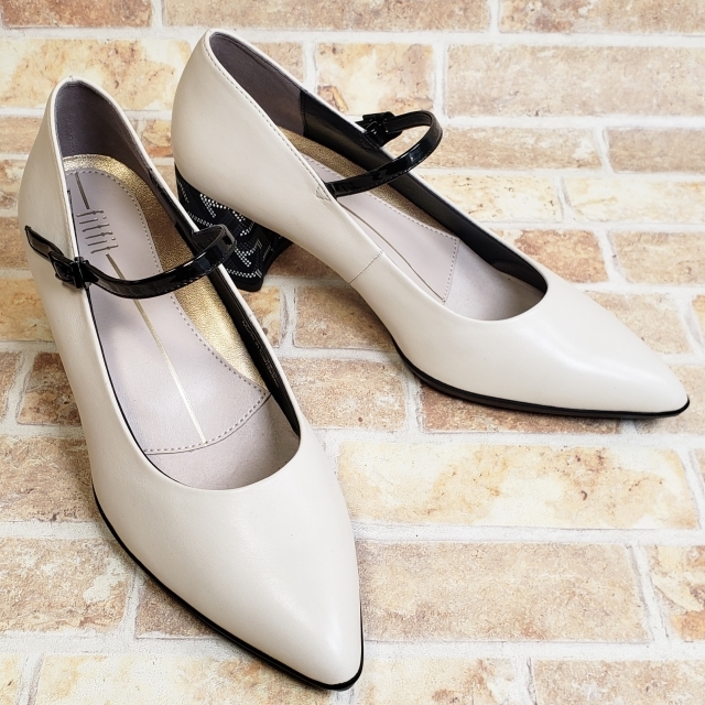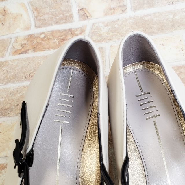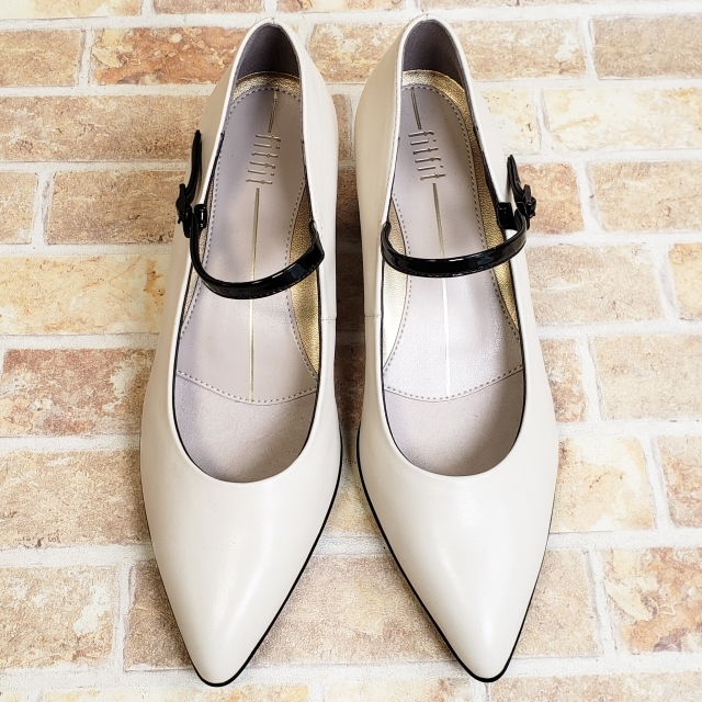 美品 フィットフィット レザー ポインテッド ヒールニーカー ストラップ パンプス チャンキーヒール モノトーン ホワイト 24 fitfit | |
