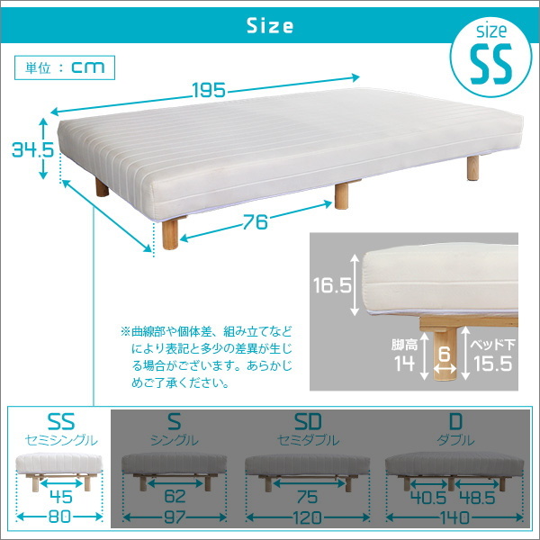 商品説明 | 商品名:脚付きロールマットレス ユニテ・ライド ブラウン色 セミシングルサイズ 商品サイズ:(約)幅80x奥行195x高さ34.5cm 商品重量:21.8kg 梱包サイズ:(約)幅90×奥行35×高さ33cm 梱包重量:23.5kg 素材 張り材:ポリエステル100% クッション材:ボンネルコイル、ウレタン、フェルト、不織布 本体:LVL、パイン(脚) 耐荷重120kg お客様組立商品 商品画像は、デジタルカメラで撮影しておりますので、 お客様のPCモニターやインターネット環境の違いにより、 多少色合いが違って見えることが御座います。 予めご了承下さい。 |