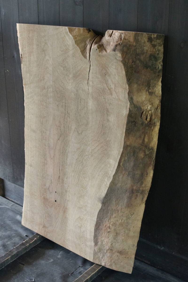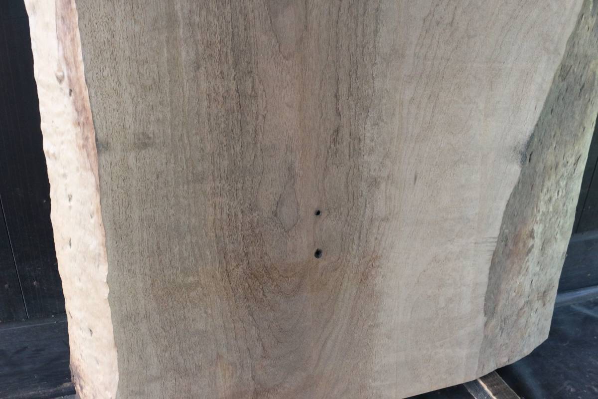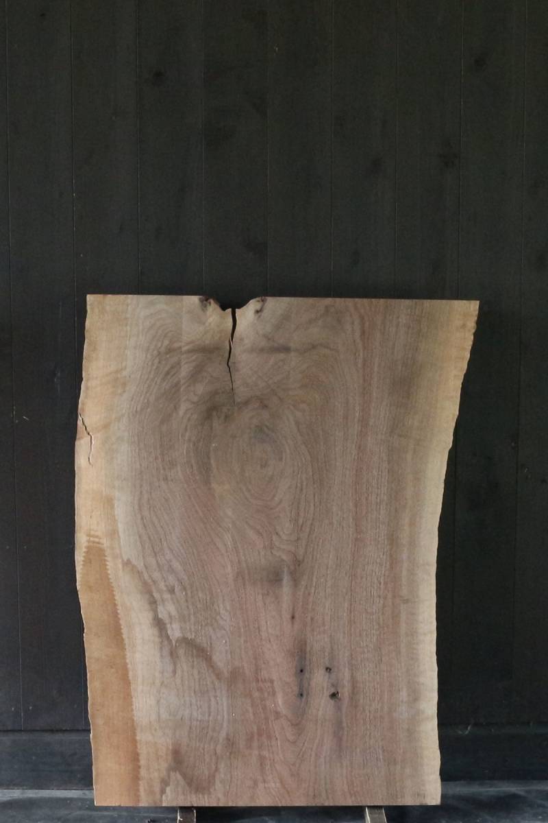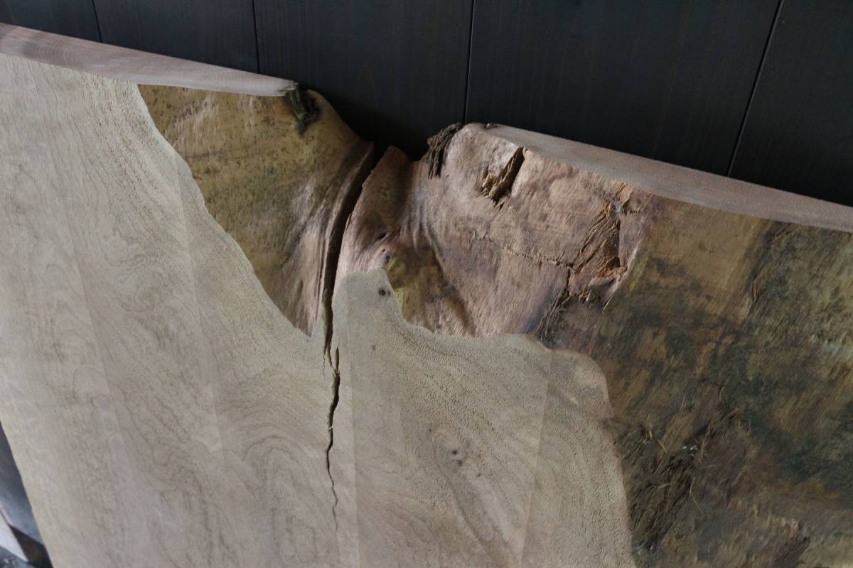 材質:ウォールナット(一枚板) 寸法:幅1080mm × 奥行830~735mm × 厚み59mm 加工:両面プレーナー加工済み、無塗装 人気のウォールナット材(人工乾燥済み)の荒板となります。 使い方は様々ですが、1m程度の幅で比較的取り扱い安いサイズ感となっています。 木目や節、自然の息吹を感じられる形状を残した状態。 裏面のほうが、ウォールナットらしい雰囲気が感じられる色合いや木目が浮き上がっています。 これからの加工が楽しみですね。 製材後も生き物のように動きを生じるものとなりますので、反り、歪み、割れなどが生じる可能性があります。 |