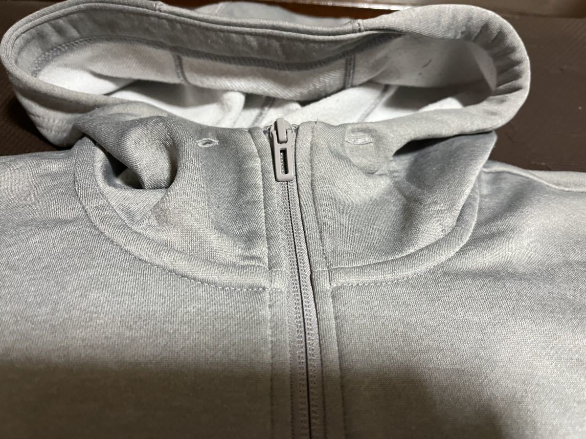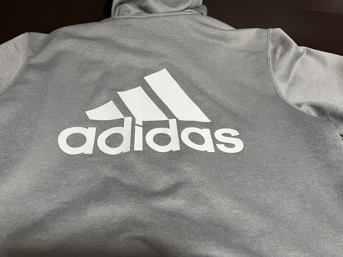 美品adidasグレー、ロゴ(バック)白ストレッチパーカー