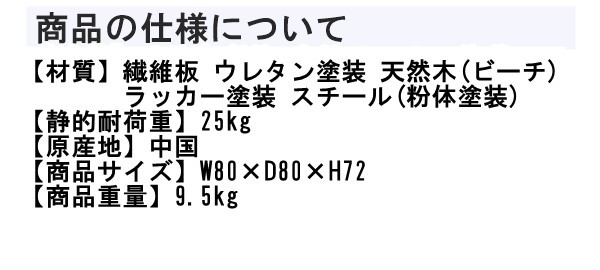 ![]() ラウンドテーブル RDT-992 ホワイト 商品の仕様について 【材質】繊維板 ウレタン塗装 天然木(ビーチ) ラッカー塗装 スチール(粉体塗装) 【静的耐荷重】25kg 【原産地】中国 【商品サイズ】W80×D80×H72 【商品重量】9.5kg ◇◆発送について◆◇