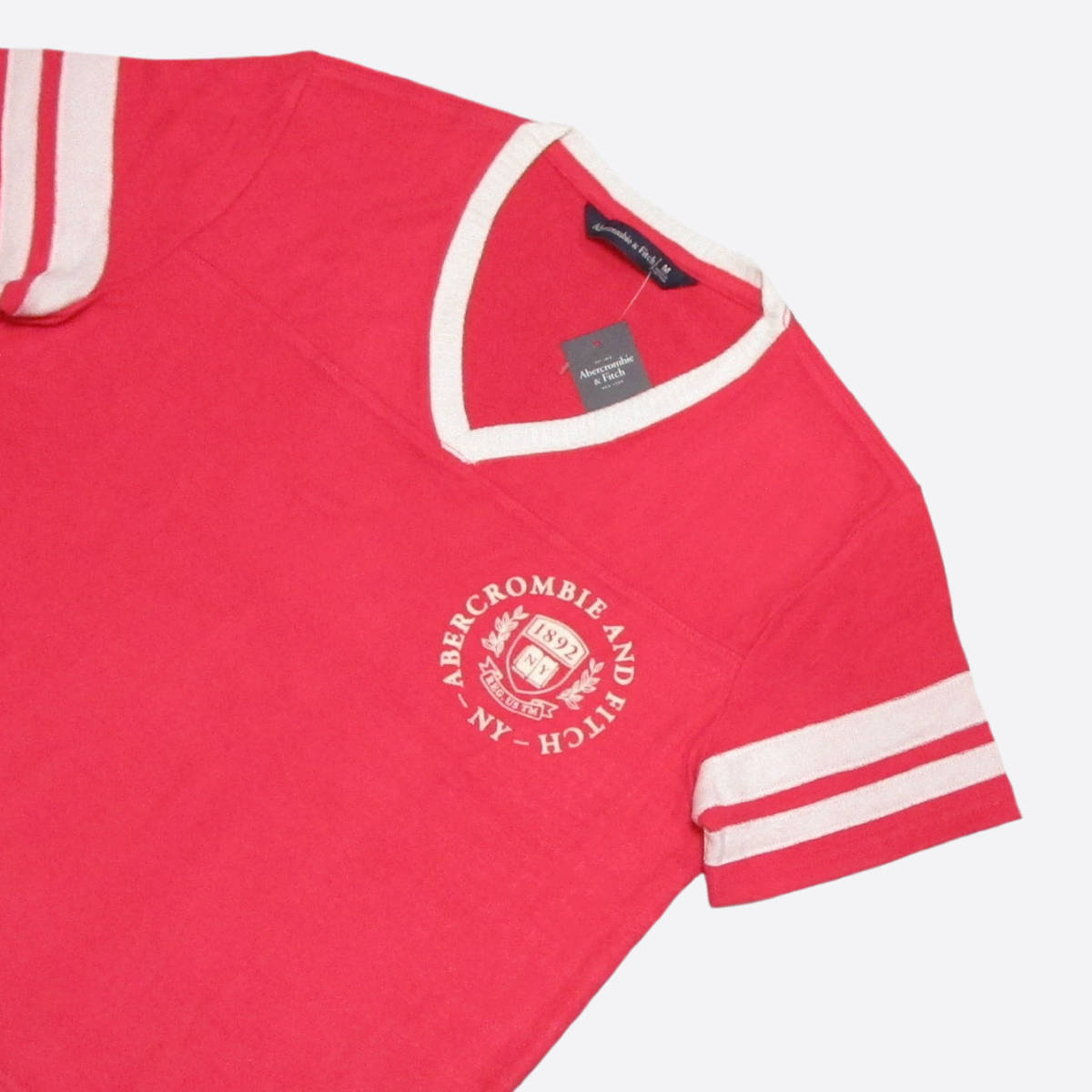 ★Abercrombie & Fitch/アバクロ★ヴィスコースニット半袖VネックTシャツ (Coral/M) | |||