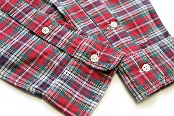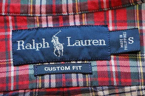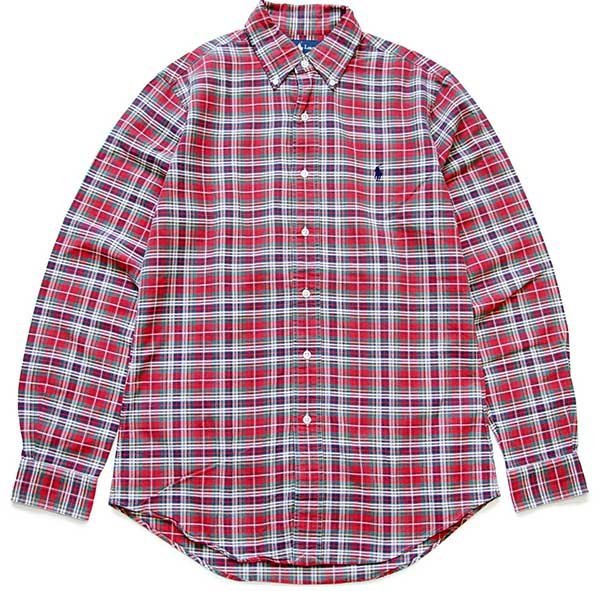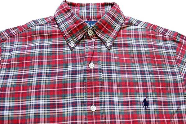 ★00s ラルフローレン タータンチェック ボタンダウン オックスフォード コットンシャツ S★10 オールド ロゴ刺繍 ワンポイント