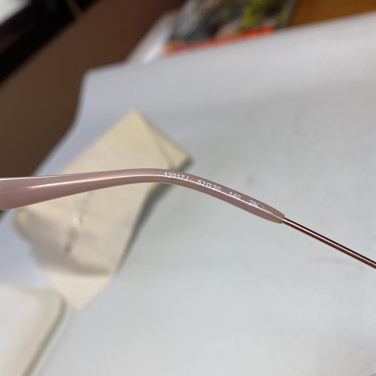 ピンクシルバー系のチタンフレームにブラウン系のレンズのサングラスです。