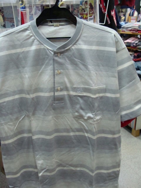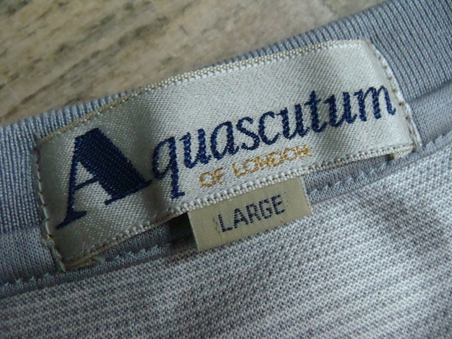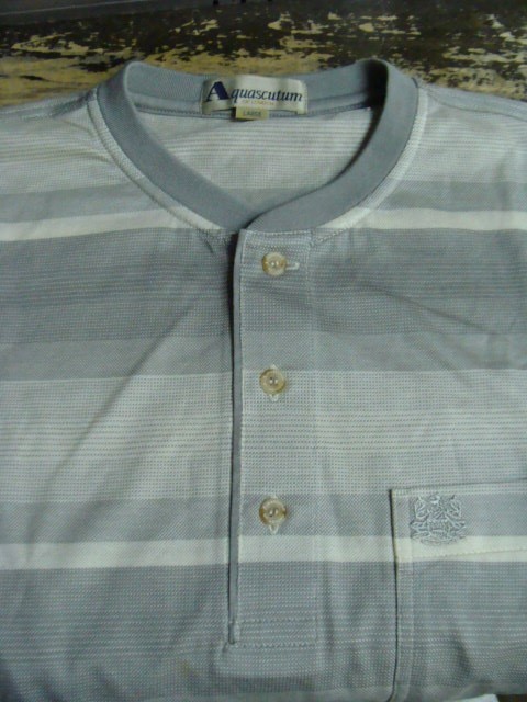 Aquascutum アクアスキュータム ヘンリーネック Tシャツ グレーボーダー (L) | |||||||||||