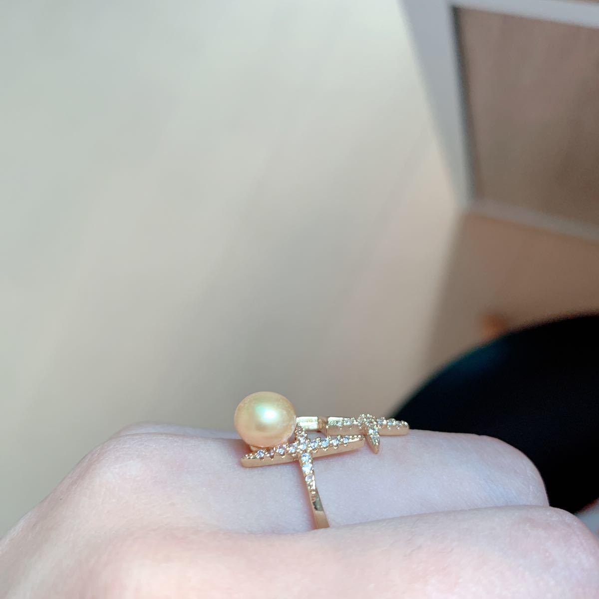 ◇淡水パール(淡水真珠)◇指輪◇リング◇ゴールド色◇フリーサイズ◇巾着袋付き◇プレゼントにも010R81105