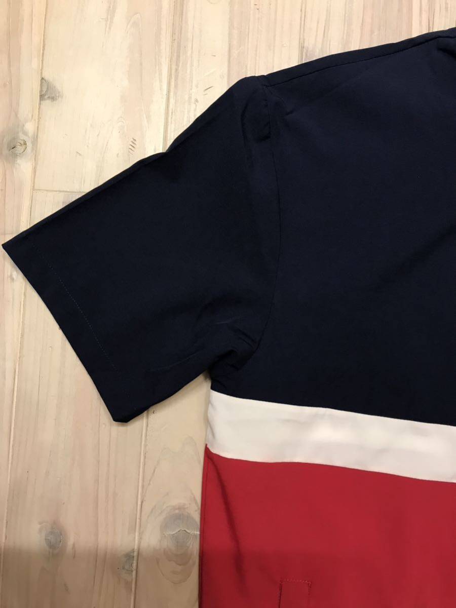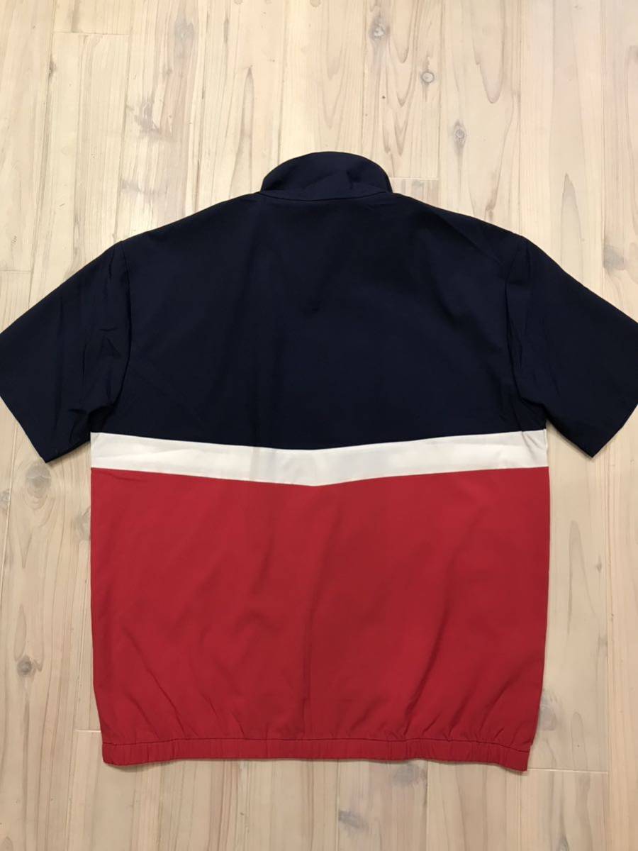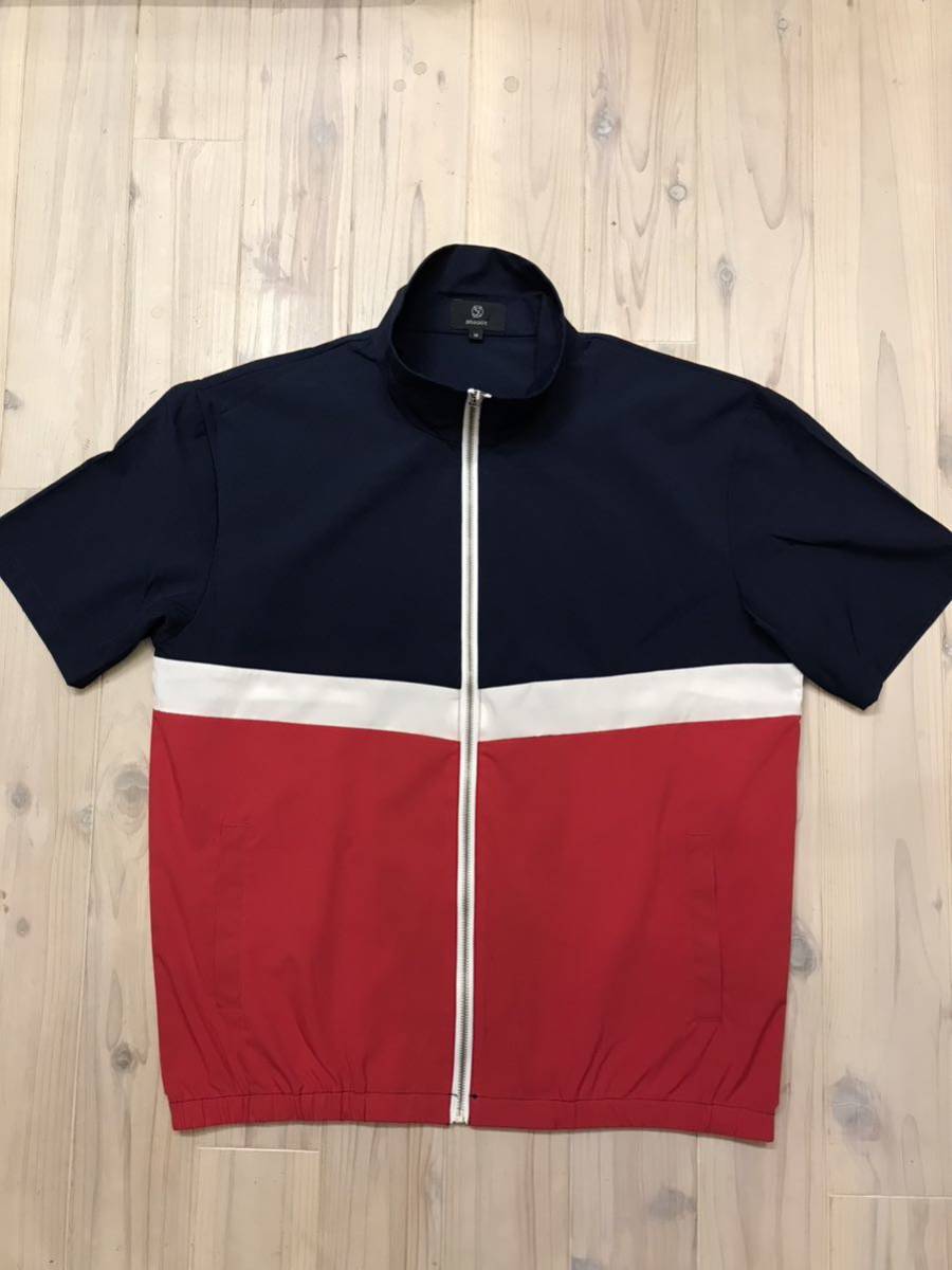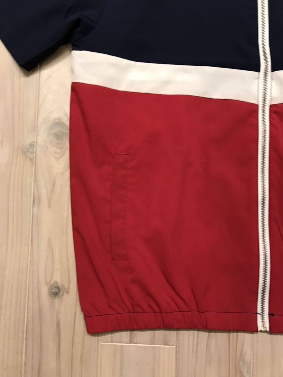 ネイビー、白、赤のトリコロールでフルジップアップ、裾はゴムリブなので襟までジップ立てて着るならストリートカジュアルっぽい感じでイケてると思います。