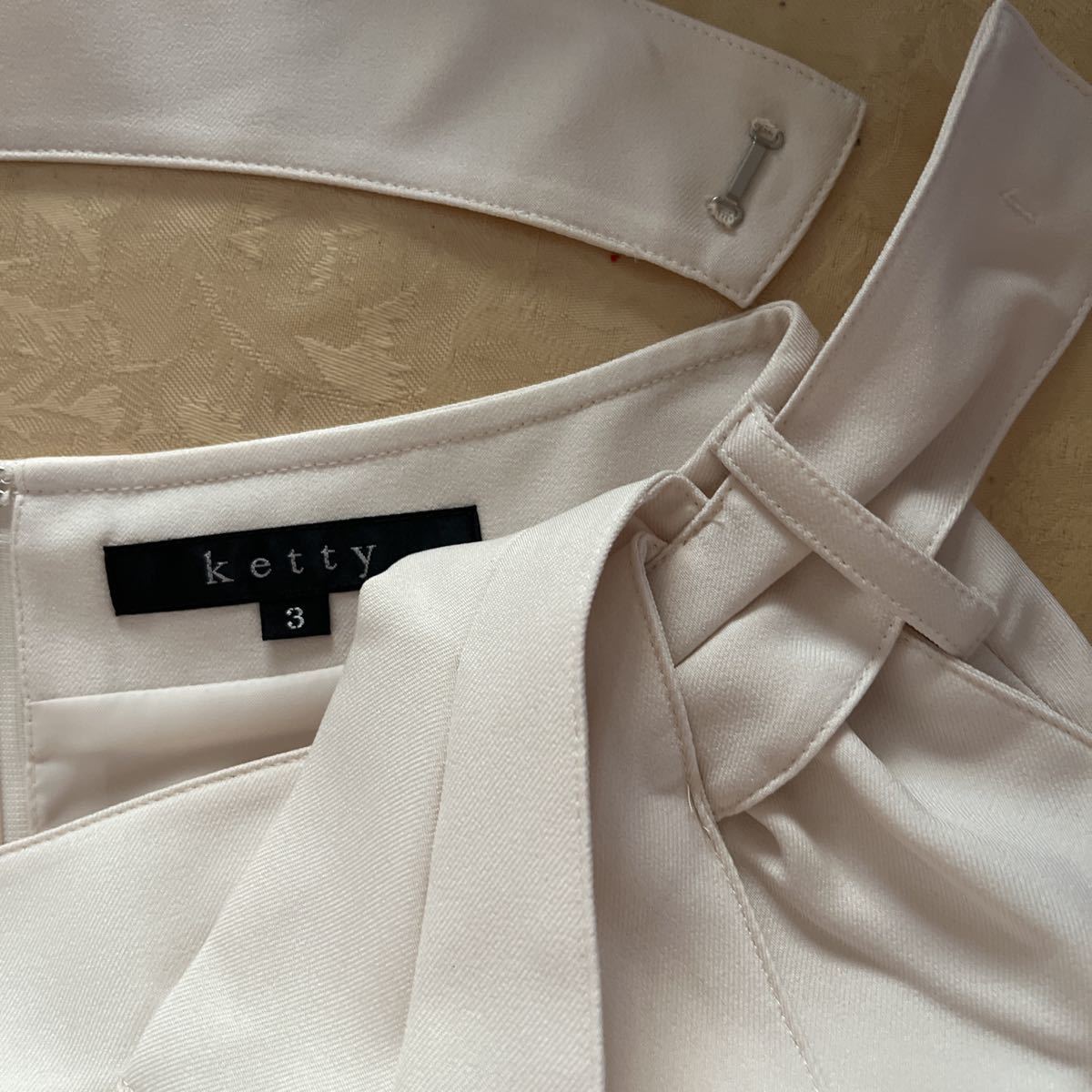 ★Ketty★フレアスカート 3 白オフホワイト 共布ベルト付き ポリエステル100% クリーニング済み です。