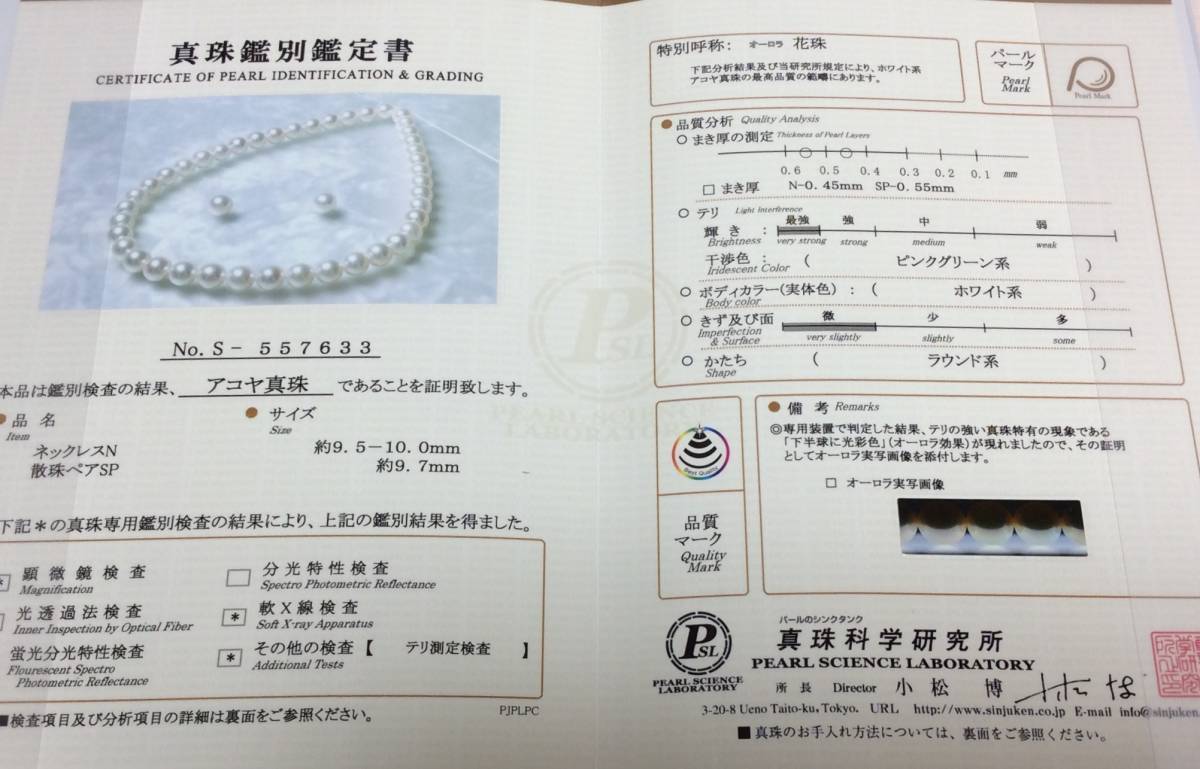 オーロラ花珠アコヤ真珠ネックレス&ピアスセットです。 大珠の大変綺麗なネックレス&ピアスセットです! ペアのピアスもオーロラ花珠です。鑑別書付です。 大珠の花珠ネックレスをお求めの方に強くお勧めいたします。 このサイズのオーロラ花珠は大変稀少です! 大変素敵です! ★サイズ 10mm~9.5mm ★形状 ラウンド ★色目 ホワイトピンク ★光沢 最強 ! ★エクボ、キズ 微 ★長さ 43.5cm ★金具 SILVER ケース、鑑別書、クロス付 ピアス サイズ 9.7mm 形状 ラウンド 色目 ホワイトピンク 光沢 最強 ! エクボ、キズ 無~微 金具 K14WG イヤリングへの変更をご希望の場合は、 入札の前に質問欄よりご連絡くださいませ。 ◎品質を保証する真珠科学研究所発行の鑑別鑑定書付です。 写真の写りやお使いの機器の環境などにより、 実物の色と画像での色が異なる場合があります。 あらかじめご了承くださいませ。 落札後は3日以内にお支払いをなさいますよう、 |