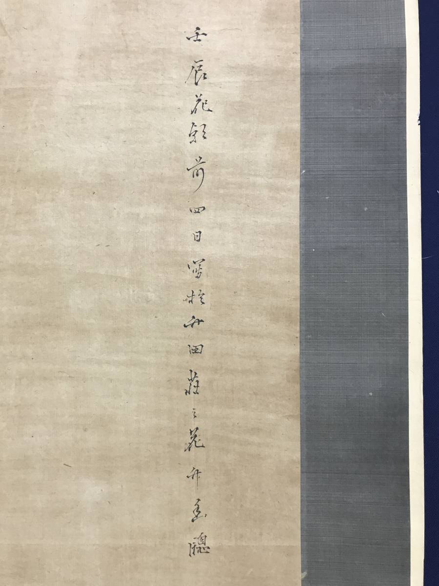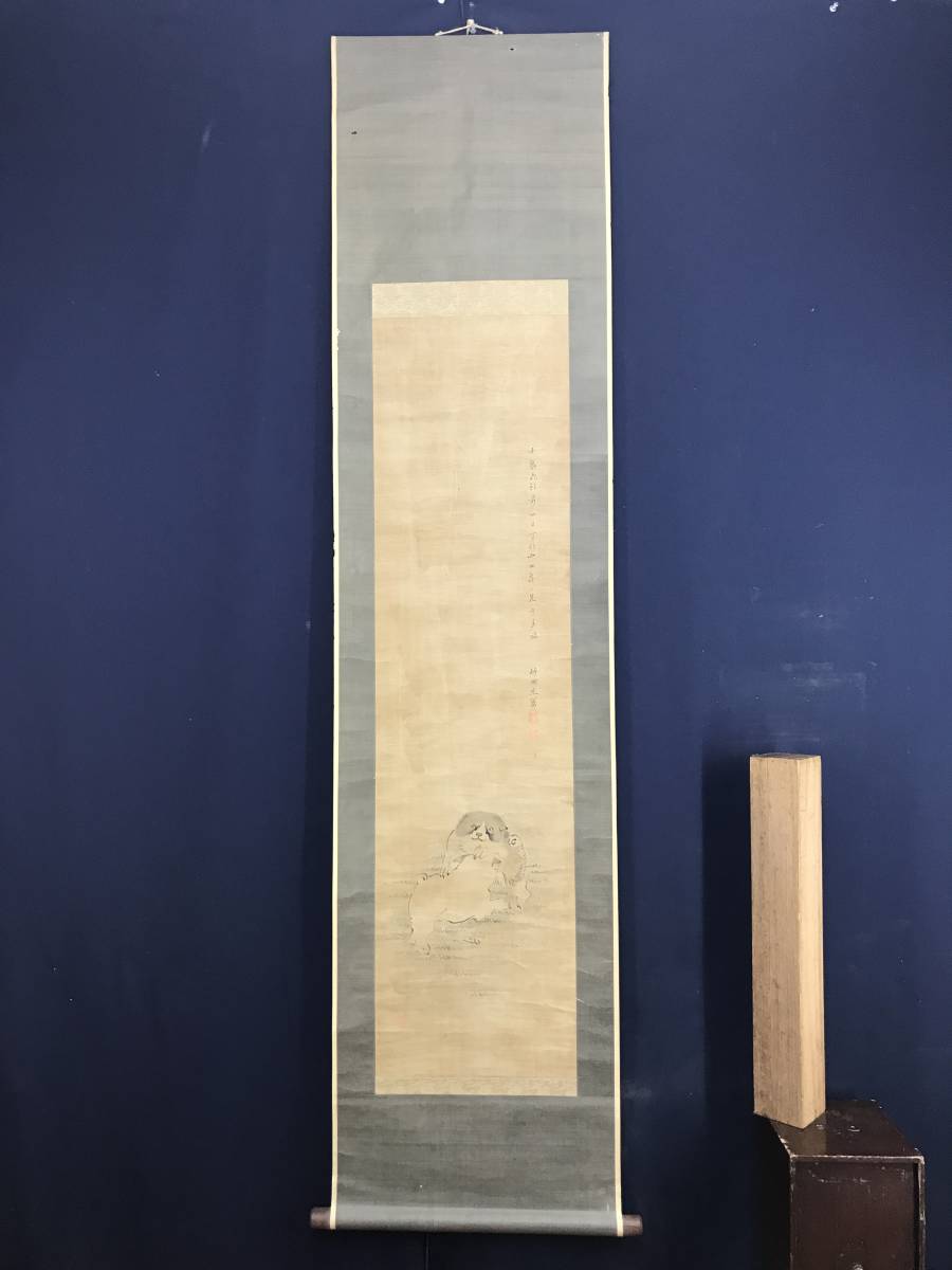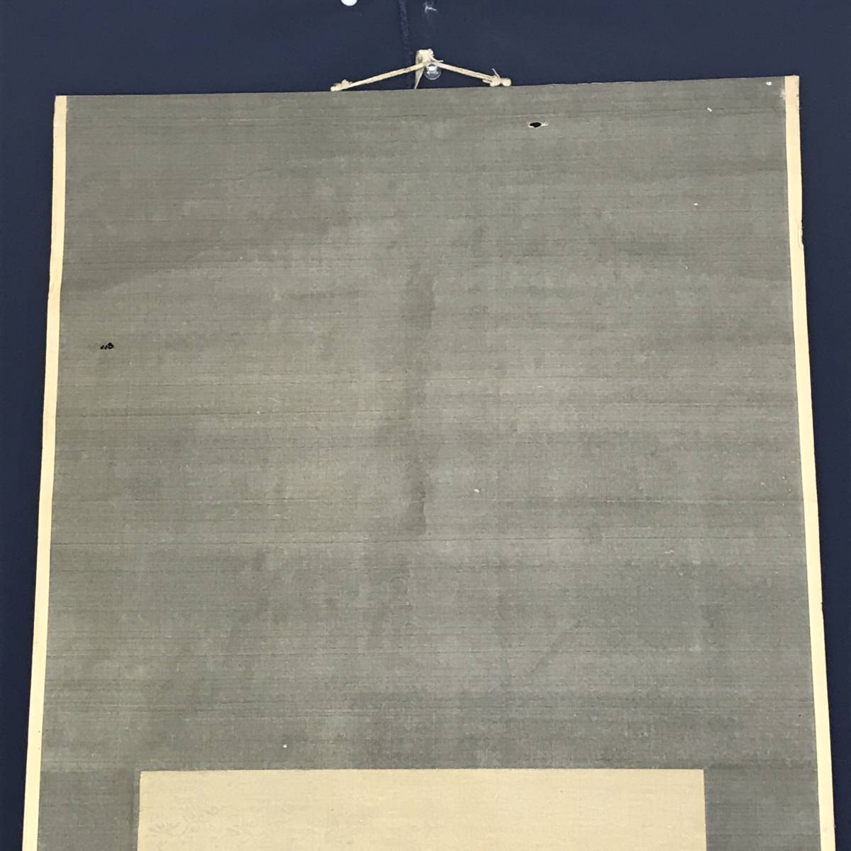 【作品状態】 本紙は紙本です。 本紙は時代感あり、全体に多数の汚れシミあります。表装は紙表装で時代感あり、数ヶ所の欠損、虫穴あります。