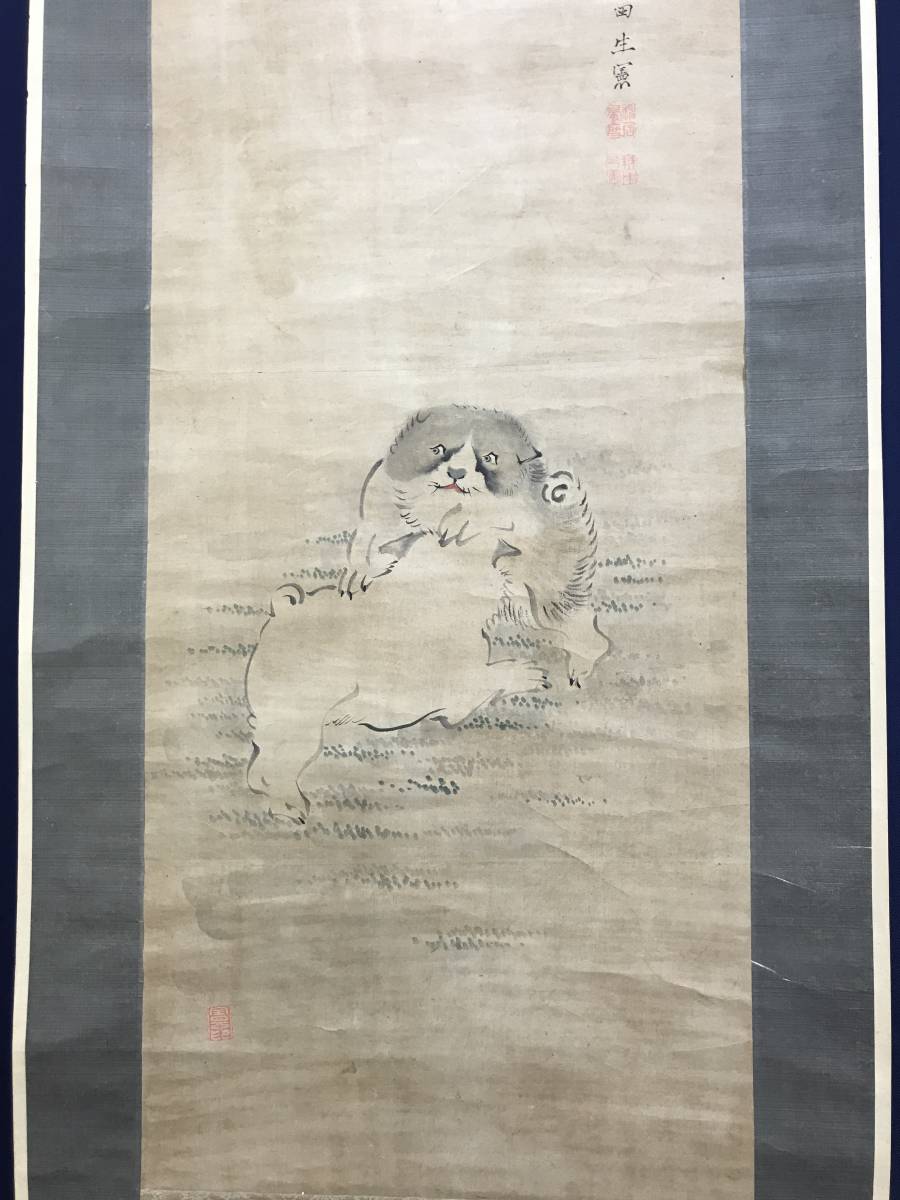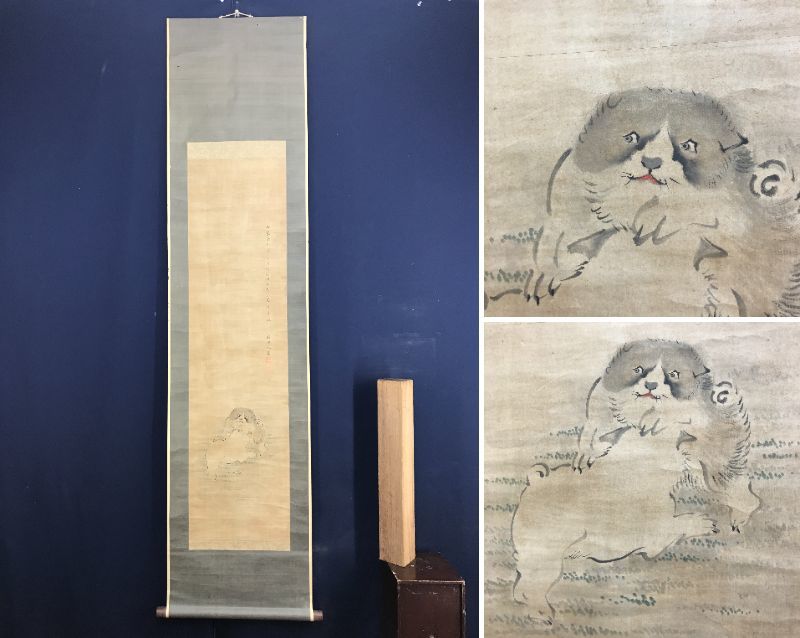真作/田能村竹田/仔犬図/子犬図/小犬図//掛軸☆宝船☆AD-488