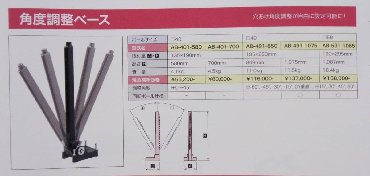 ■ 商 品★ 新  品 ★■ コンセック 口49 角調調整ベース AB-491-1075 185×250mm 高さ:1075mm