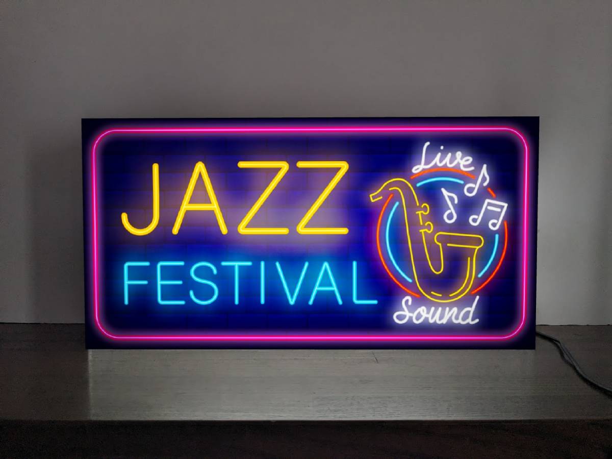 【Lサイズ】ジャズフェスティバル コンサート ジャズ喫茶 レコード 珈琲 酒 店舗 自宅 照明 看板 置物 雑貨 ライトBOX 電飾看板 電光看板