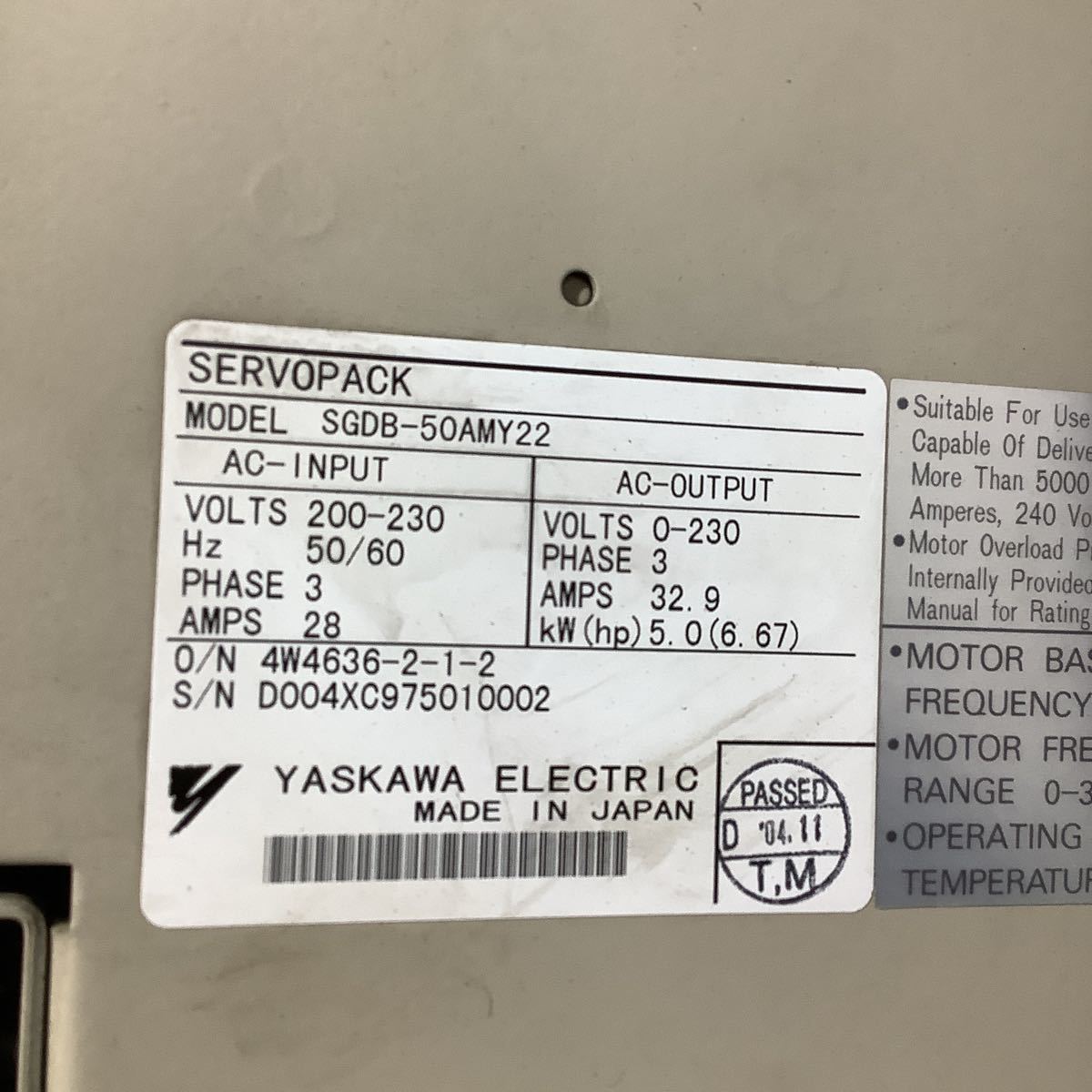 安川電機 サーボポンプSGDBー50AMY22 中古品動作未確認です。自動車製造工程のスポット溶接ロボで使用した物です。