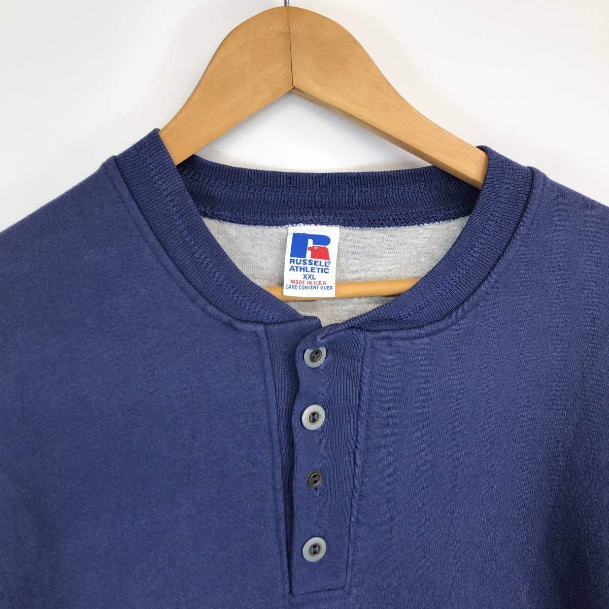 90s USA製 ラッセルアスレチック RUSSEL ATHLETIC ハーフボタン スウェットシャツ XXLサイズ ネイビー系