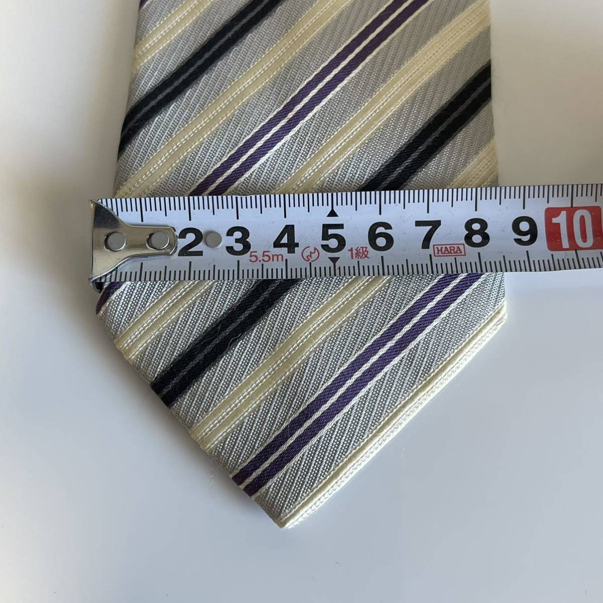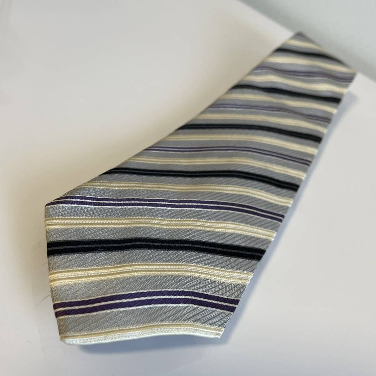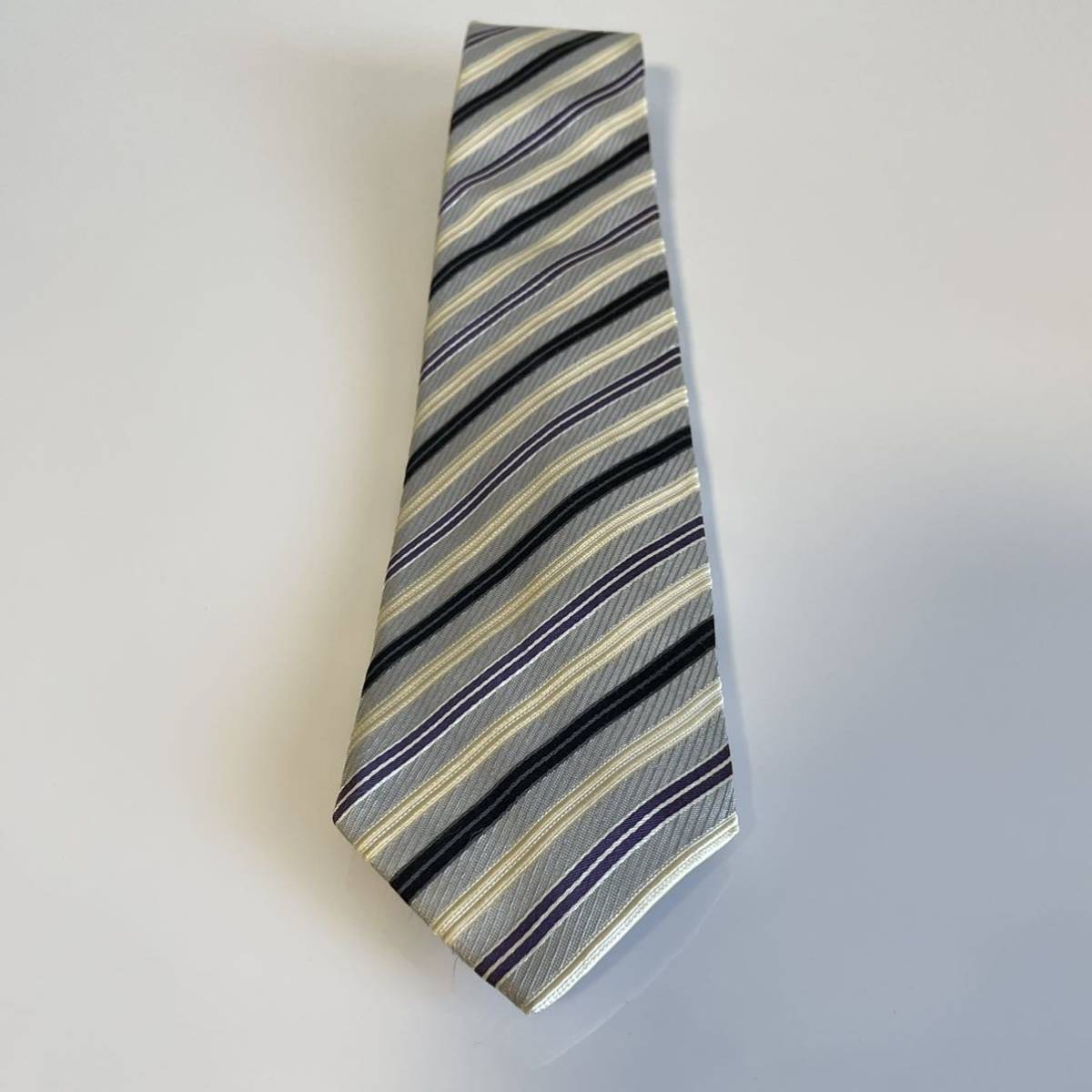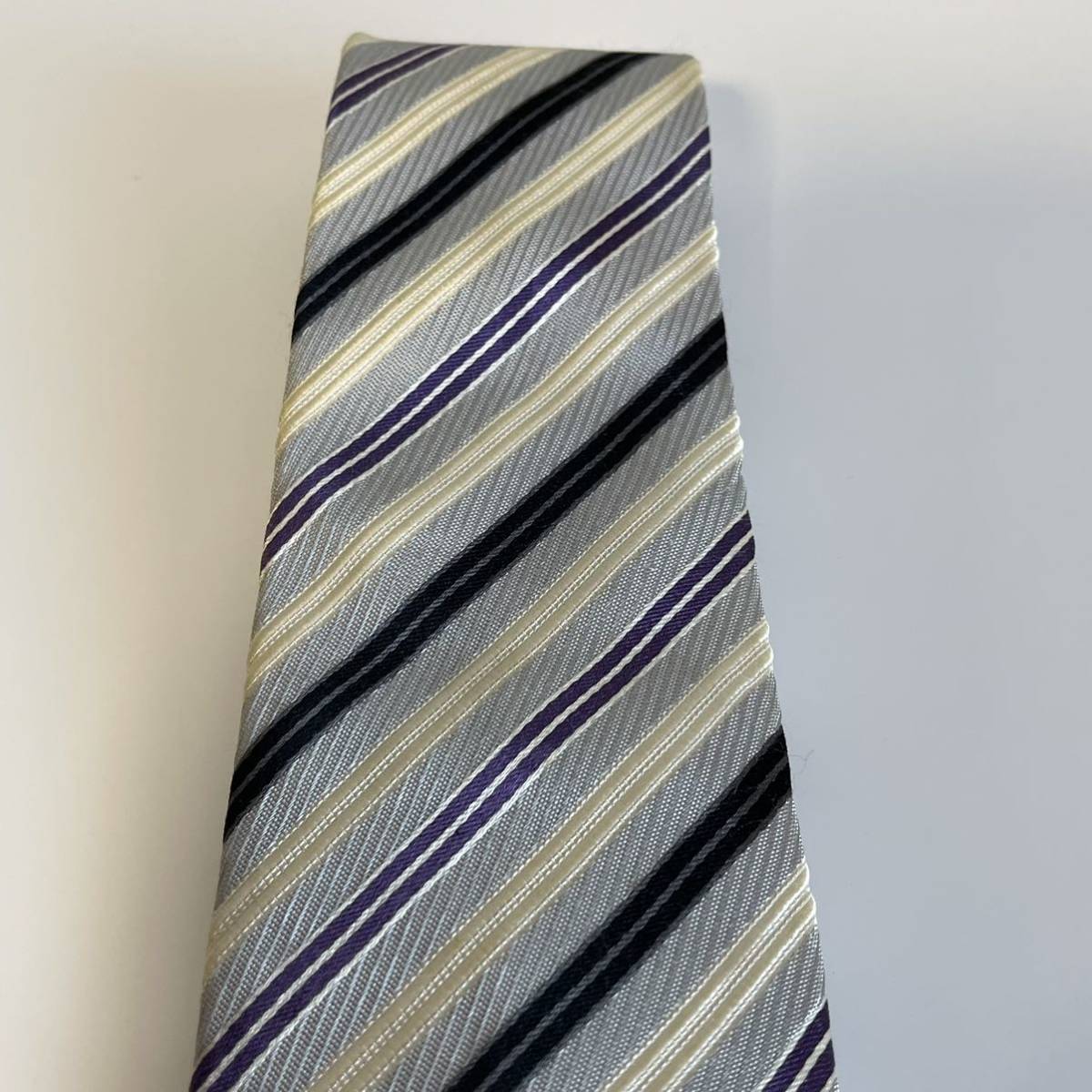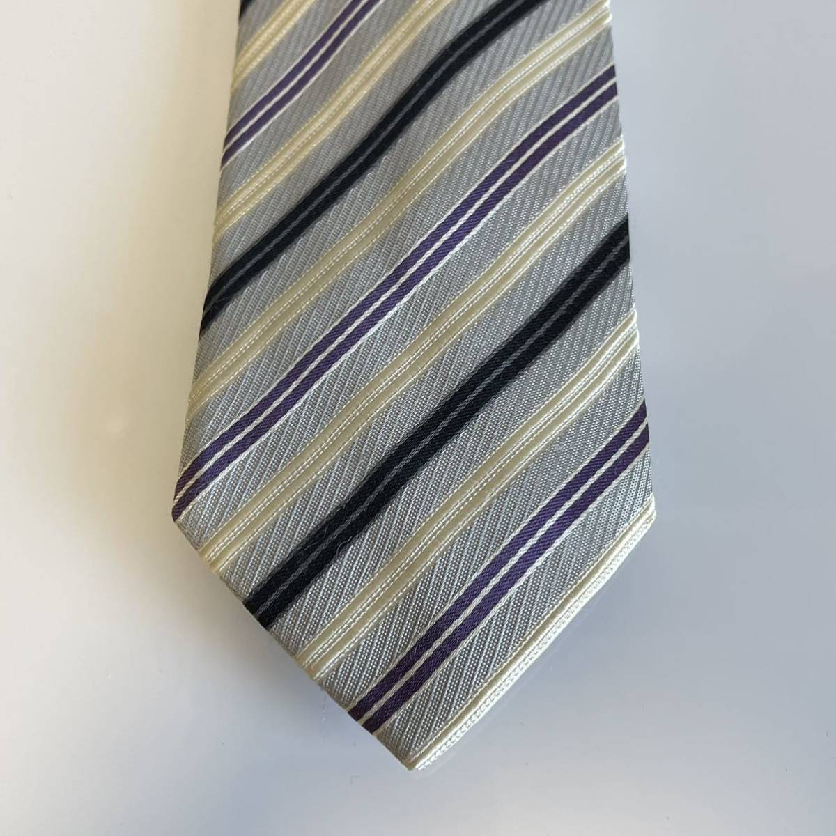 スカイブルー紫ベージュストライプネクタイ