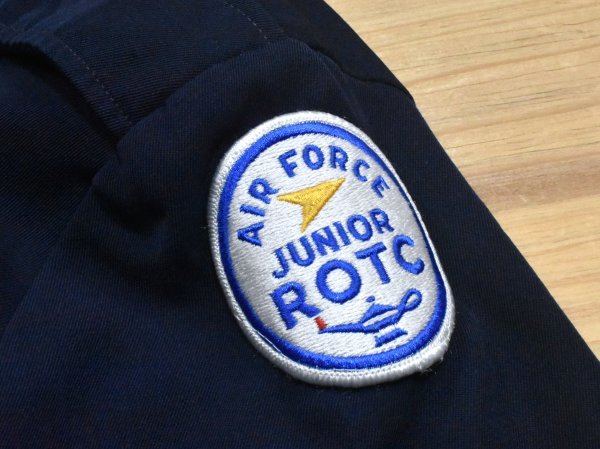 アメリカ空軍のジャケットで、左腕に空軍の学校のワッペンが付いています。