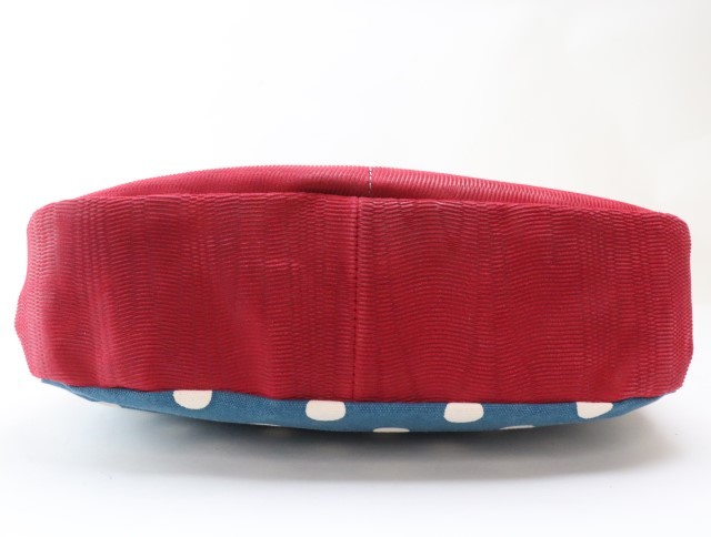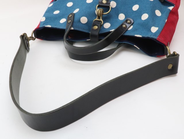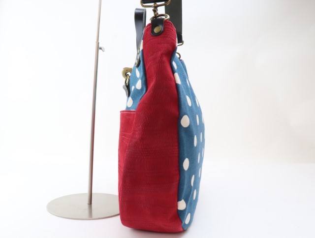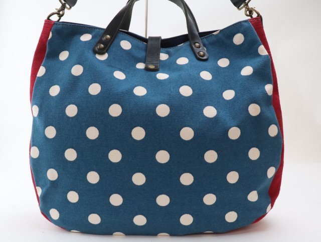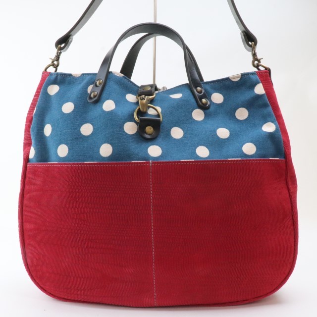 | 2311-60 キャンバス×スエード系 トートバッグ ショルダーバッグ 2WAY ブルー×レッド 水玉柄 | |