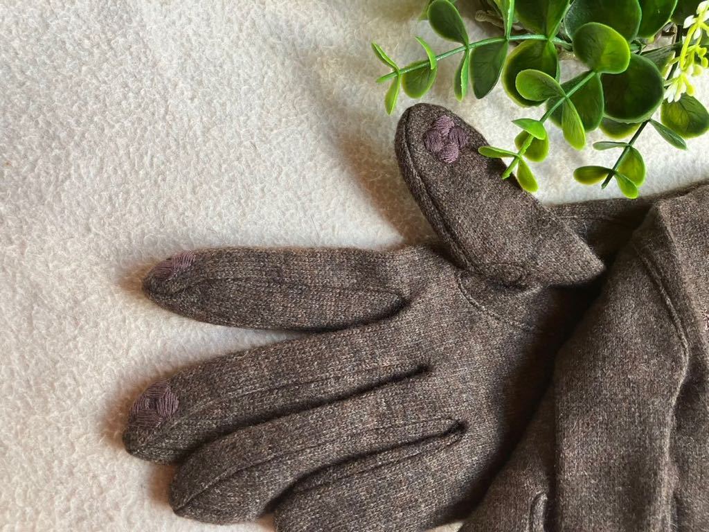 ★新品★ ANTEPRIMA アンテプリマ カシミヤ混 刺繍 スマホ対応 手袋 レディース 杢ブラウン
