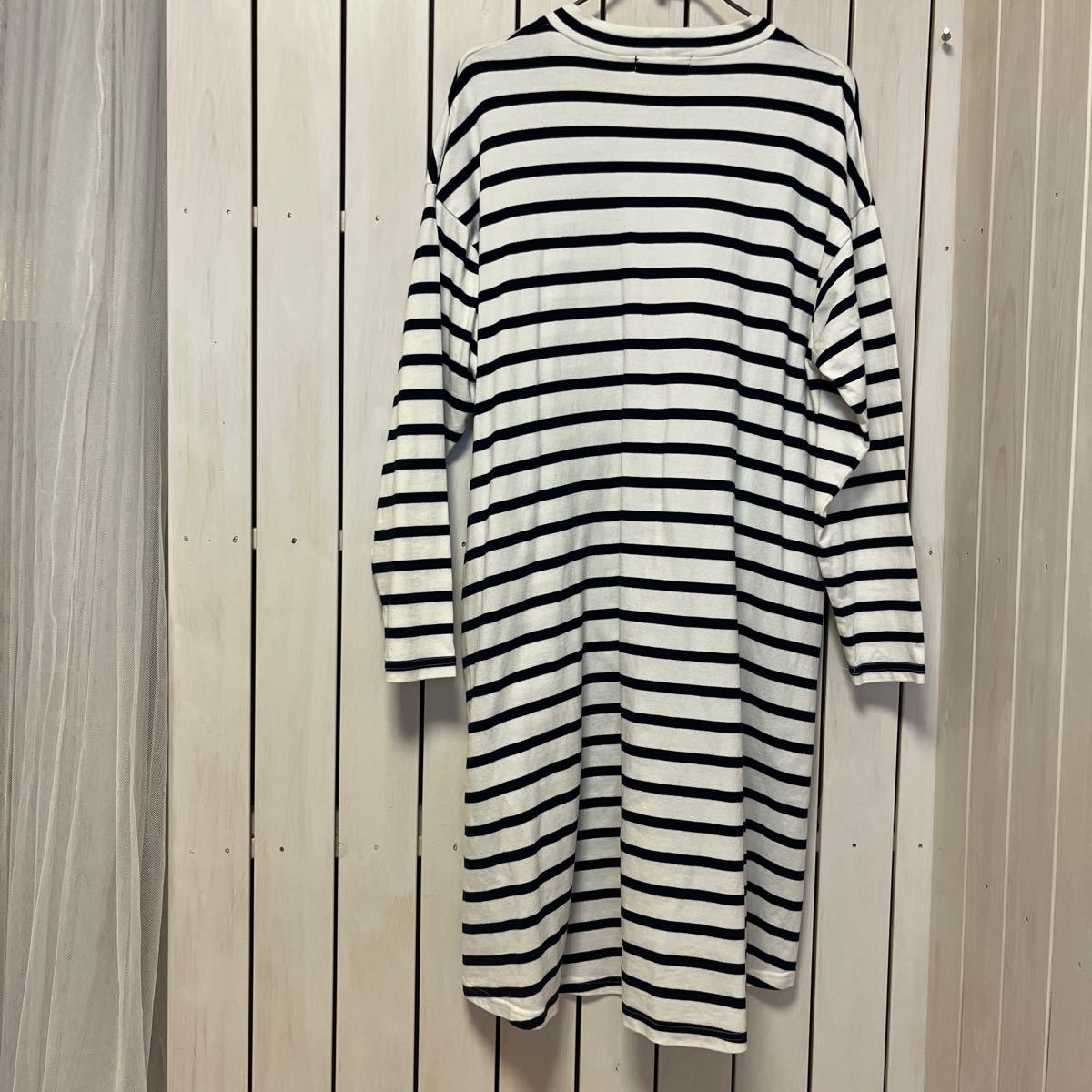 ★長袖ボーダーワンピース★綿100% F
