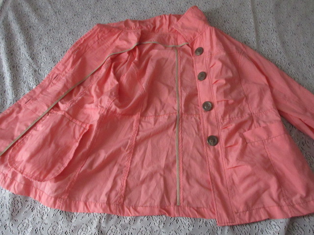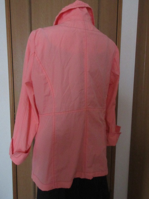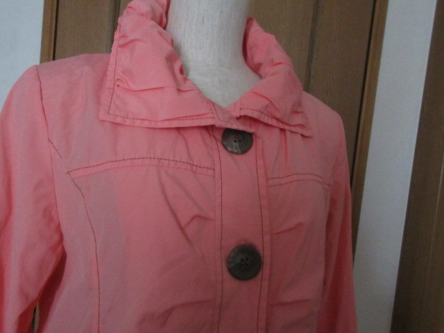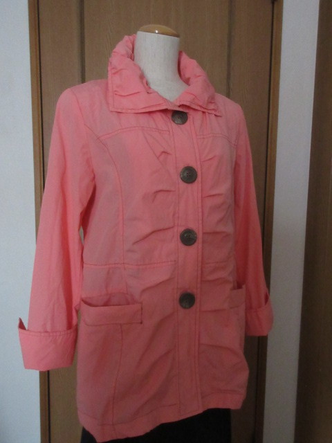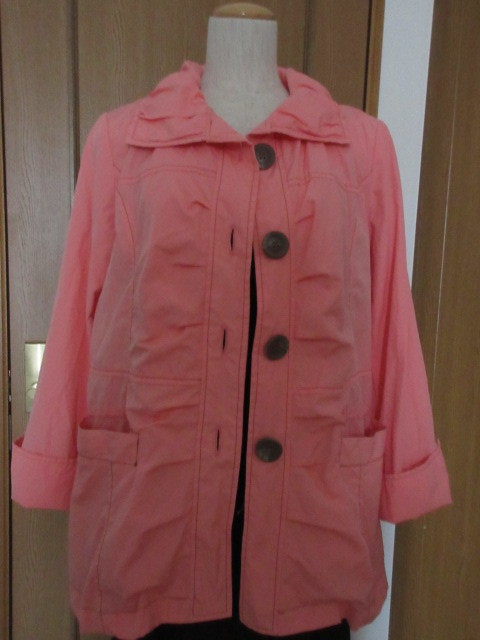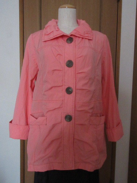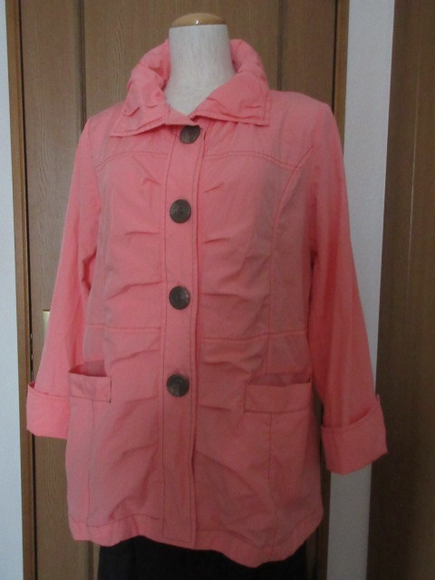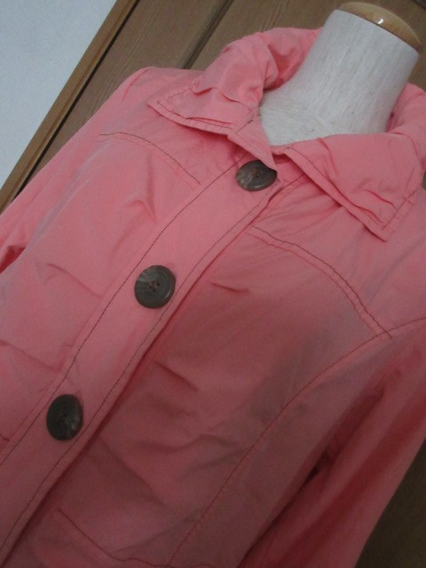 P)■【Eiger Wand】■サーモンピンク綿55%■特大ボタン&PK/ふっくらギャザー襟/着痩せ切り替えデザイン!■お洒落なシャツジャケット