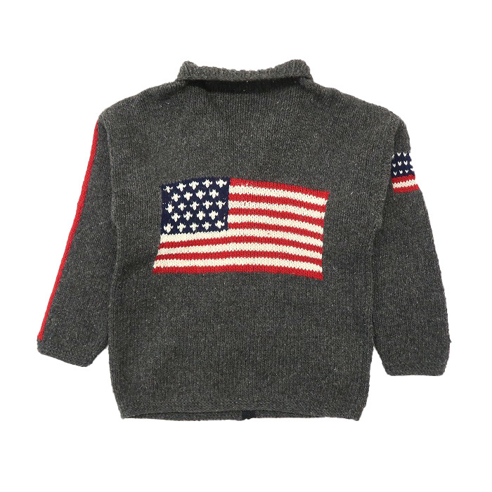 古着 ウールニット セーター フルジップ 星条旗 ダークグレー サイズ表記:- gd74916
