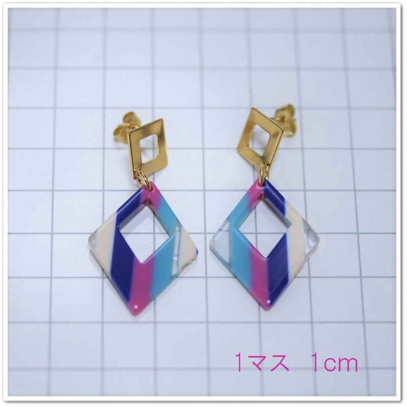 ステンレス金具のストライプ柄ひし形ピアスです。