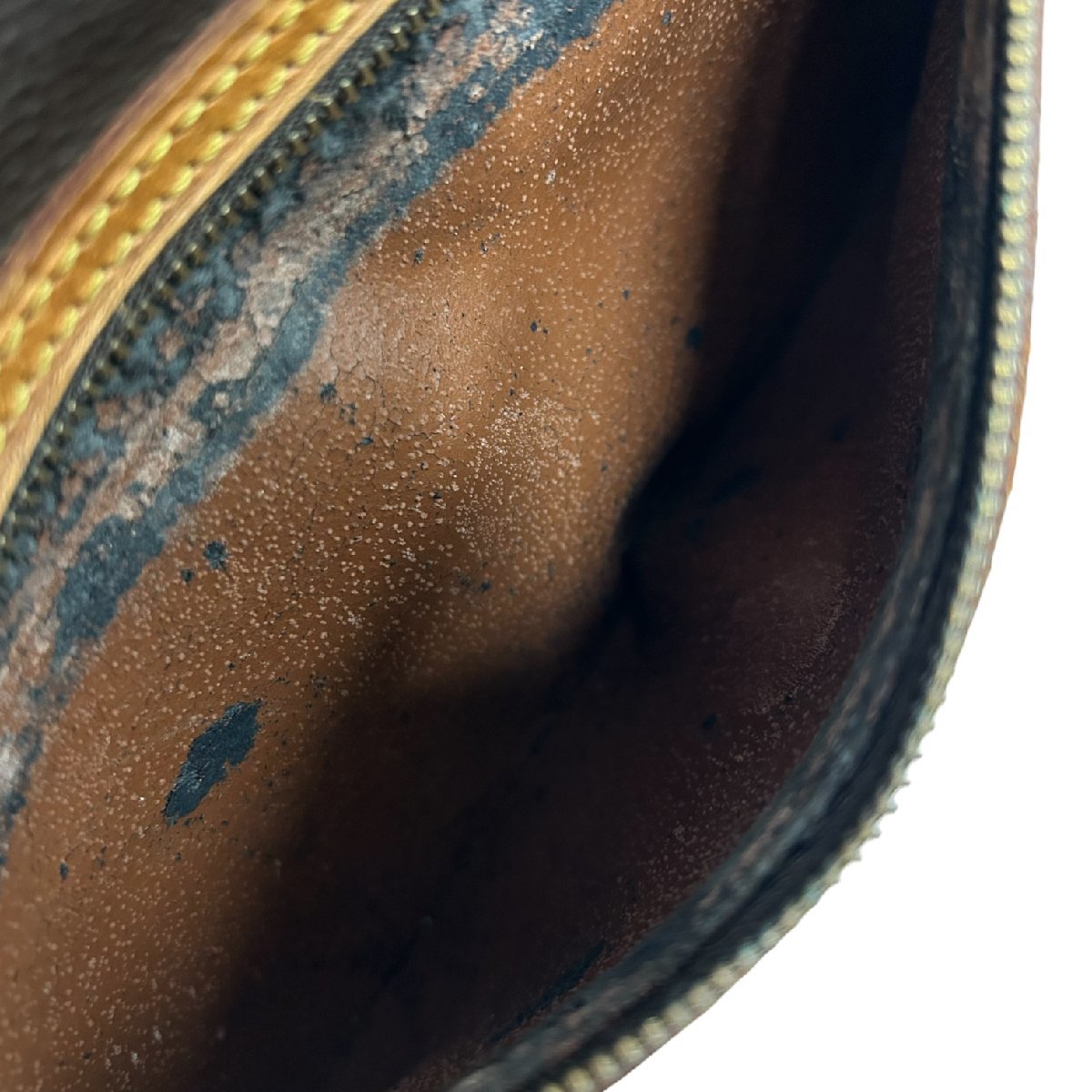 状態 | ■外側に使用感があり、キズやペン跡がございます。 ■金具に剥がれがあり、ファスナー開閉が少々しづらくなっています。 ■内部ポケット部分にべたつきがございます。 |