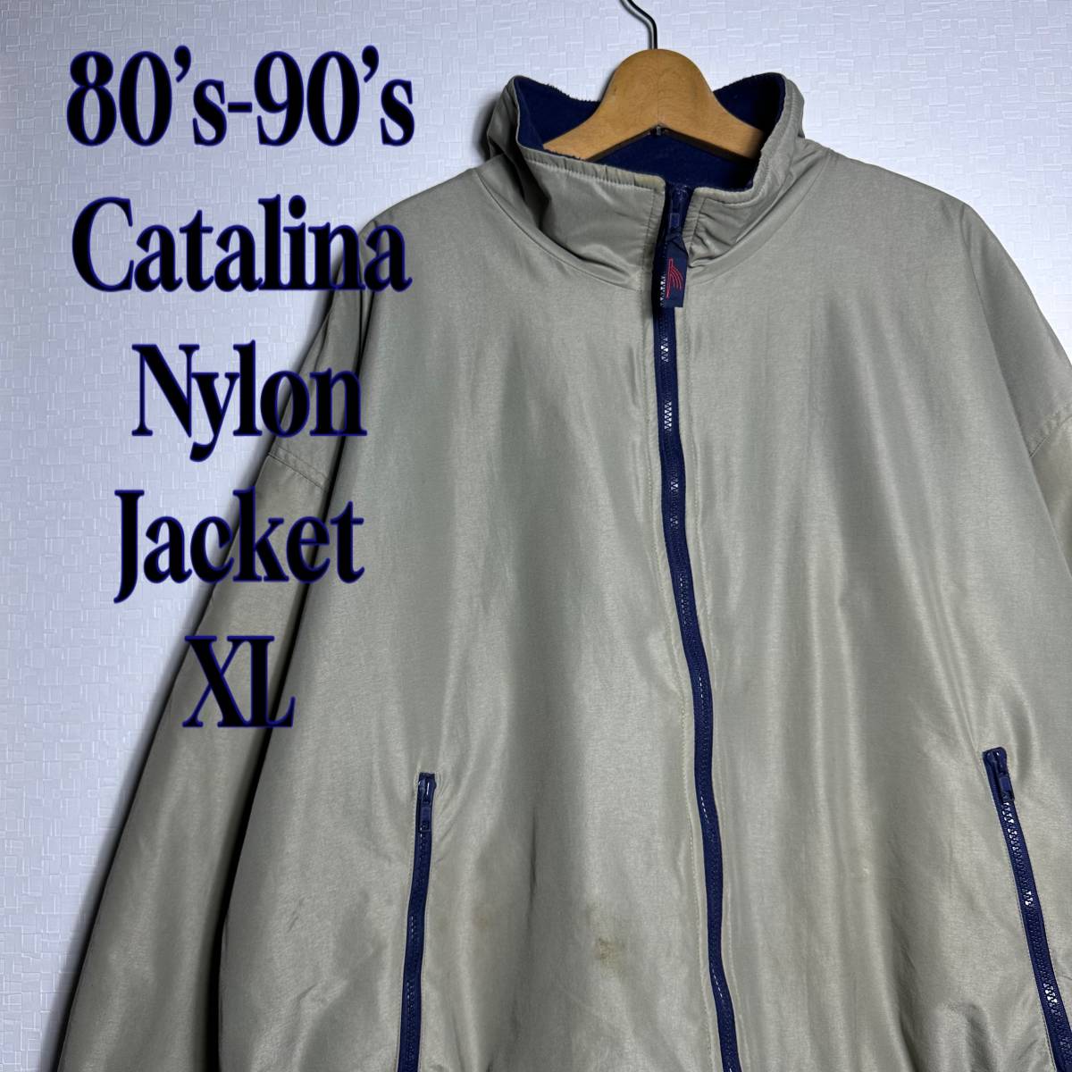 80‘s~90‘s カタリナ Catalina ビンテージ ナイロンジャケット XL 中綿 シルバーグレー 防寒 DIY ワーク