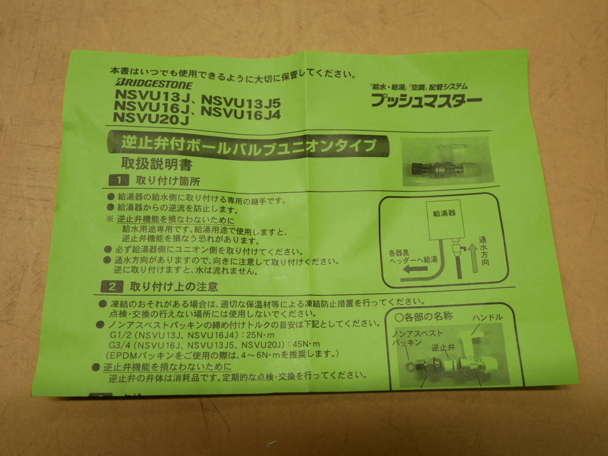 ブリヂストン プッシュマスター逆止弁付ボールバルブユニオン16J NSVU16J 5個セット 即決価格 | |||