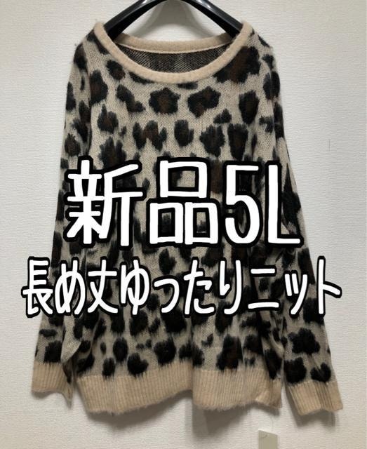 新品☆5L♪レオパード柄♪長め丈ゆったりニット☆z279