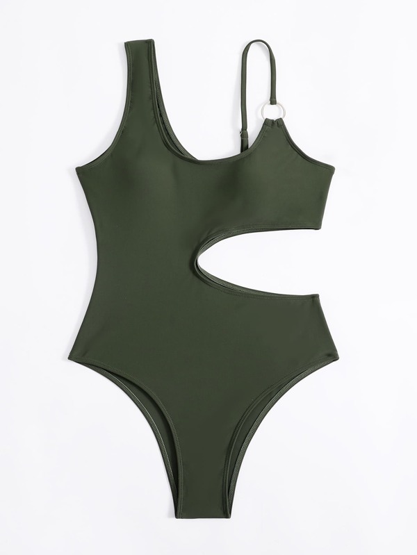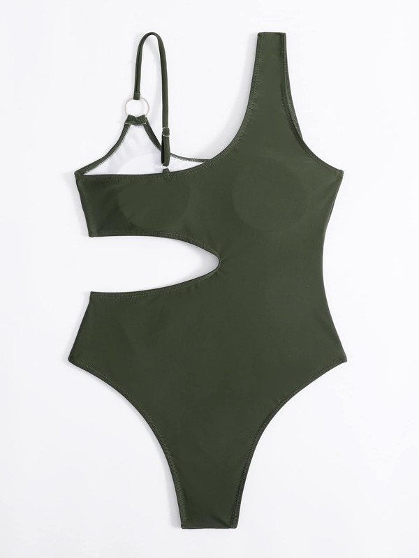 レディース 水着 ワンピース 無地柄 カットアウト リングリンク ワンピース水着