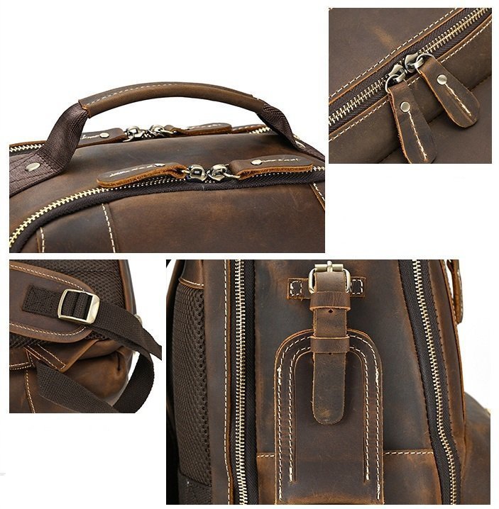 美品 カジュアル兼用 サック メンズ レザー バックパック レトロ通勤通学 リュック 好評 アウトドア 14インチ  ブラウン