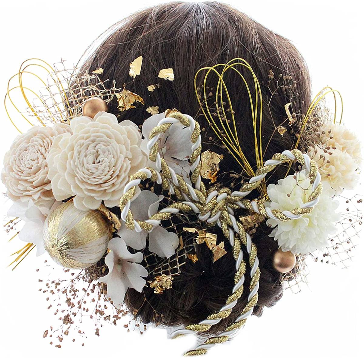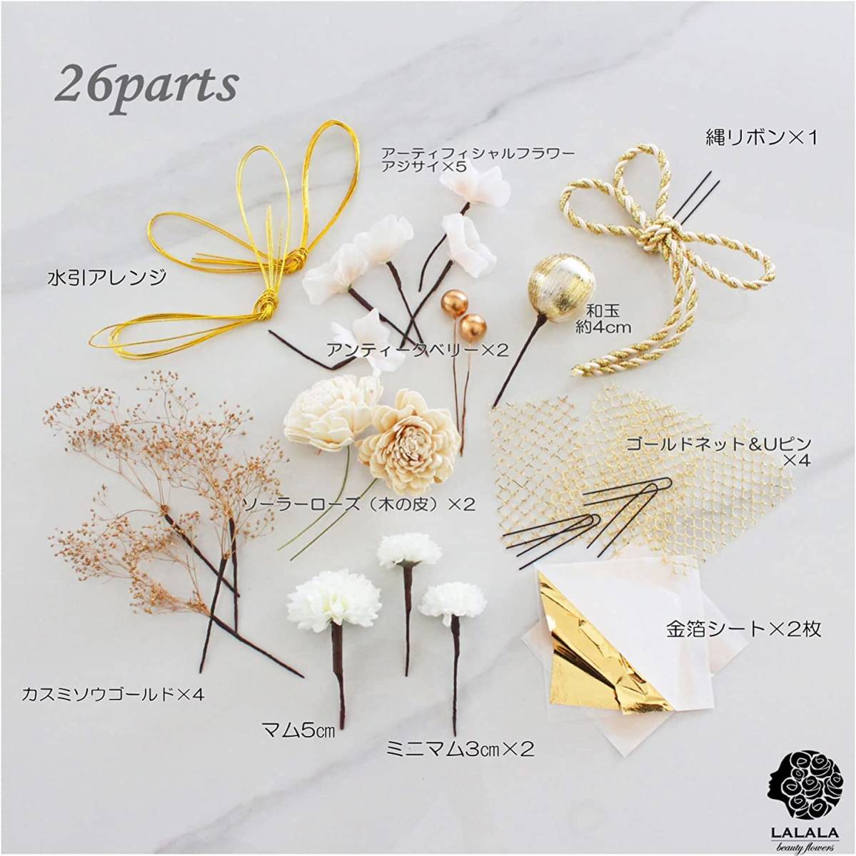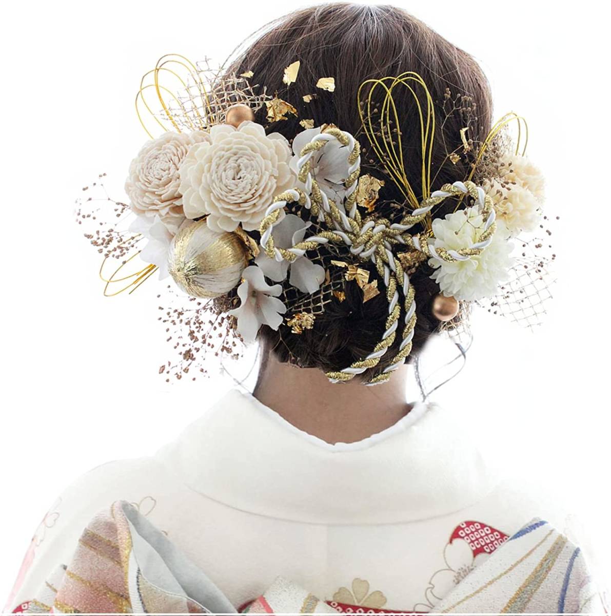 26点セット 髪飾り 金箔 髪飾り 成人式 卒業式 和装 結婚式 袴 ドライフラワー プリザーブドフラワー 高級造花 プレゼント 自然素材 白