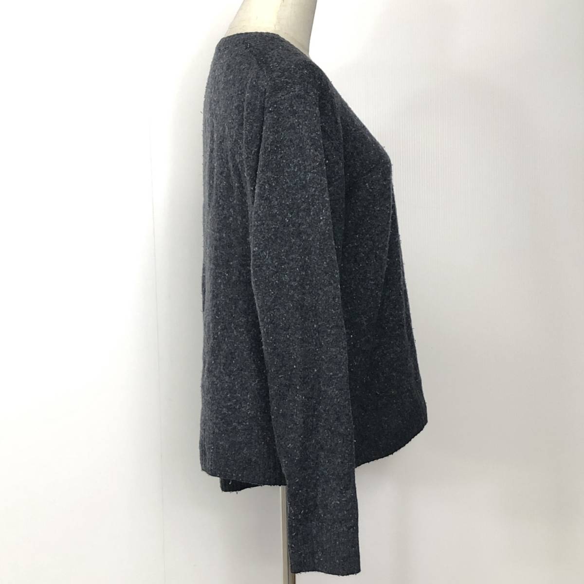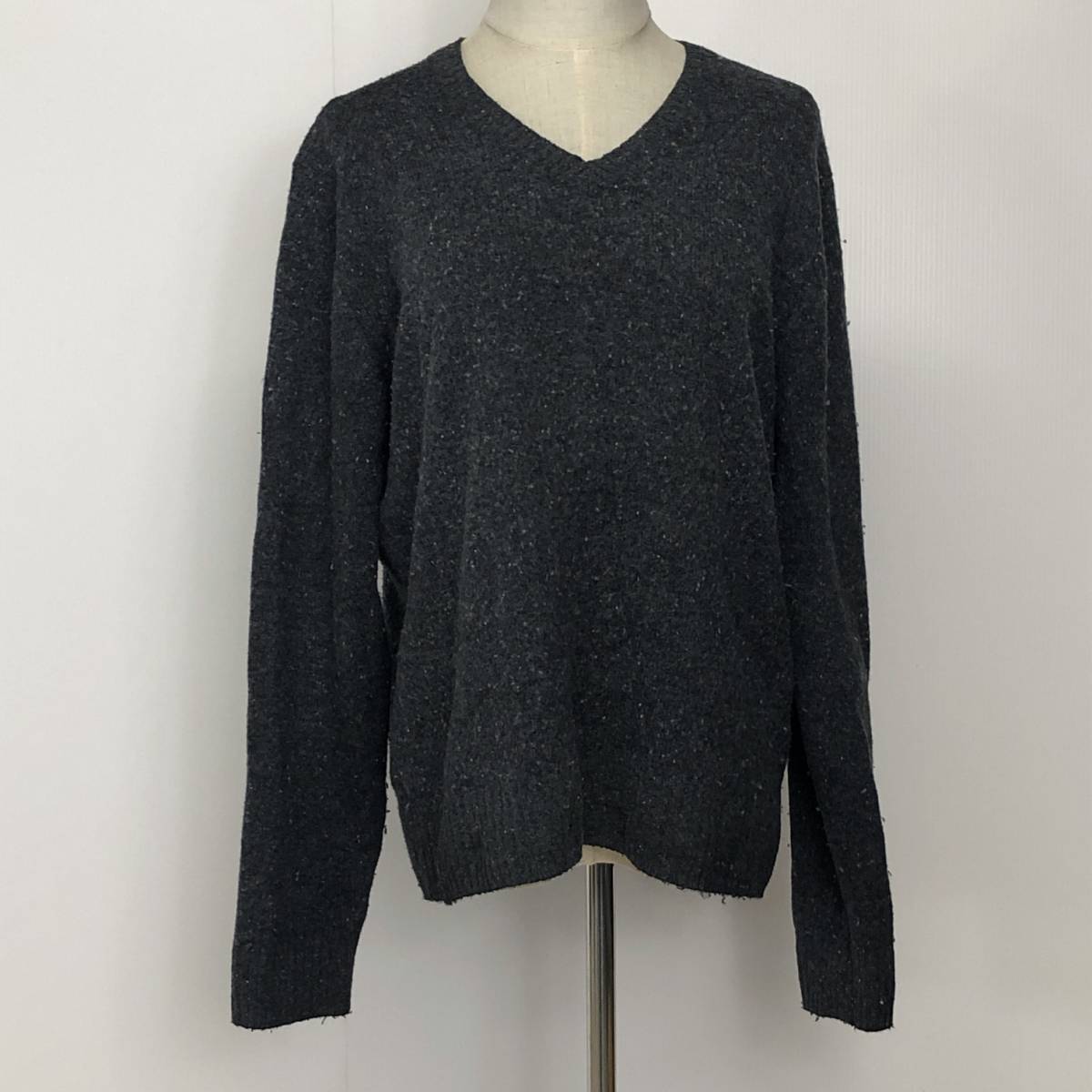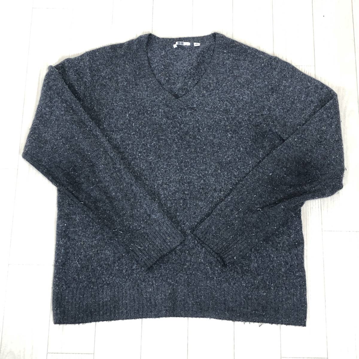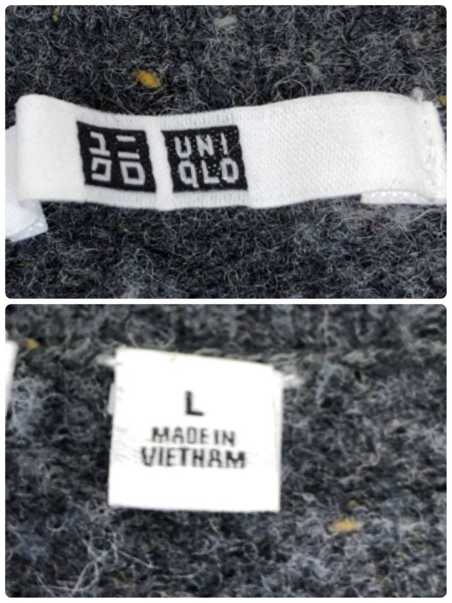 Y0249 UNIQLO ユニクロ レディース トップス ニット セーター 長袖 Vネック Lサイズ グレー 灰 毛素材 ウール 防寒 あたたか シンプル 秋冬